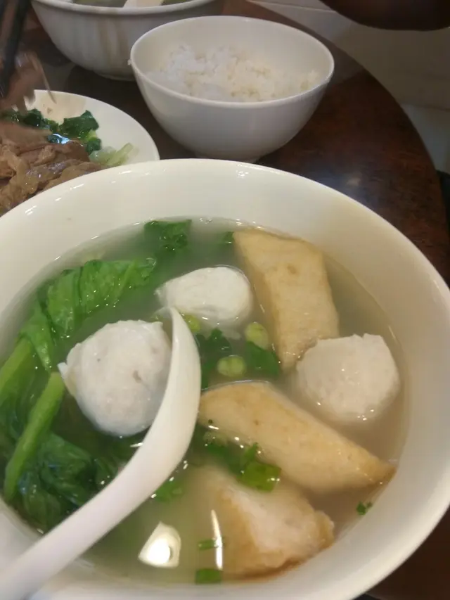 叫咗個黑椒牛丸河粉同魚皮餃米粉加碟油菜。黑椒牛丸好大陣黑椒味,同埋粒丸幾彈牙!河粉就不過不失,有少少易斷。個魚皮餃okay,啲皮唔會話好厚。米粉配埋啲湯麵幾入味!油菜就都係啲菜加蠔油,唔會煮到太爛👍🏻查看更多