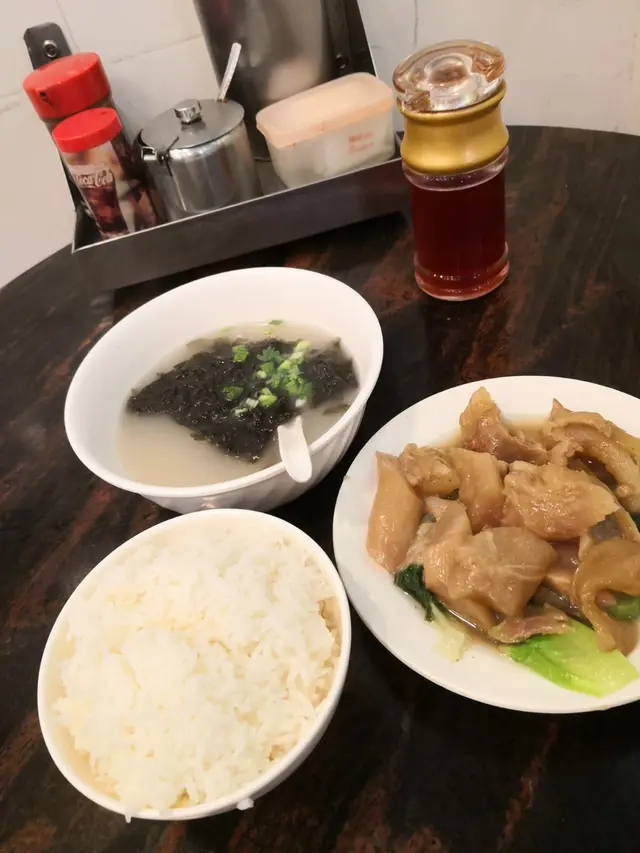 在佐敦德成街靚樓林立嘅地方,難得會有一間平民食堂。食碗魚蛋粉30幾,叫個清湯牛腩飯都50有找。幫襯的時間其實都四五點,但竟然都坐滿客人,但當我望望枱上的牛腩,心裡都大概明白。清湯牛腩飯最怕莫過於腩肉煮到似煲湯瘦肉一樣,乾柴又無味。所以清湯牛腩最好一定要有一定肥肉,添上牛肉脂香,以及提升湯頭味道。至於成興用的清湯牛腩算係合格,間中係有一兩舊的確有如乾柴,但有油脂依附的牛腩入口中和瘦肉的乾癟,讓脂香於口腔中漫遊。腩汁亦吸收了牛腩的甜,撈飯更正。至於湯就正常紫菜湯發揮,足料夠大碗。反而我嫌白湯偏少,餸仲多過飯,女士食或者夠嘅。但其實成個清湯牛腩飯有菜有肉有湯,都係45蚊埋單。當我食完起身走走,都有撐住肚皮的感覺。查看更多