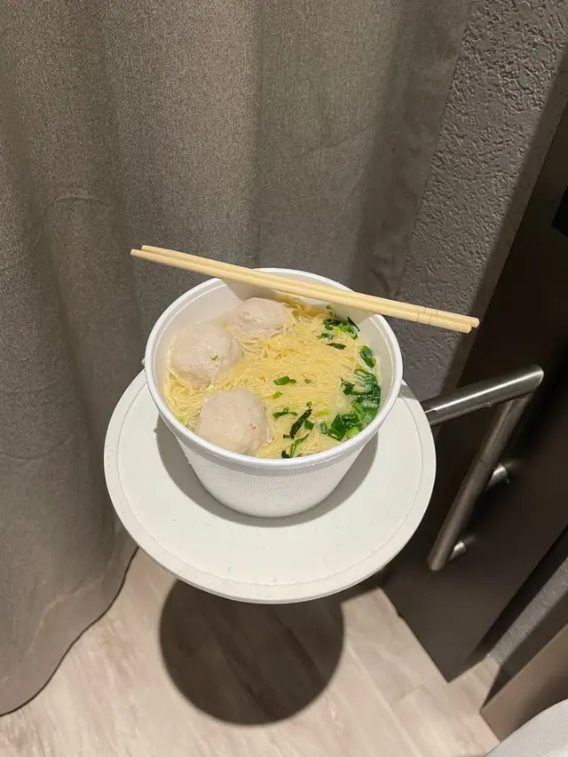 21:30後嘅佐放,營業嘅舖頭真係小之有小🥲兜了幾個圈終於搵到一間開舖靚豬肉丸麵 $35 外賣加一一碗有5粒豬肉丸 真係抵到爛🤤自製豬肉丸 肉質較實絕對冇偷工減料不過麵仲差啲 煮得耐得制同因為外賣 拎到酒店已經淋晒🥲——————成興魚蛋粉 (佐敦)佐敦德成街1號A地下查看更多