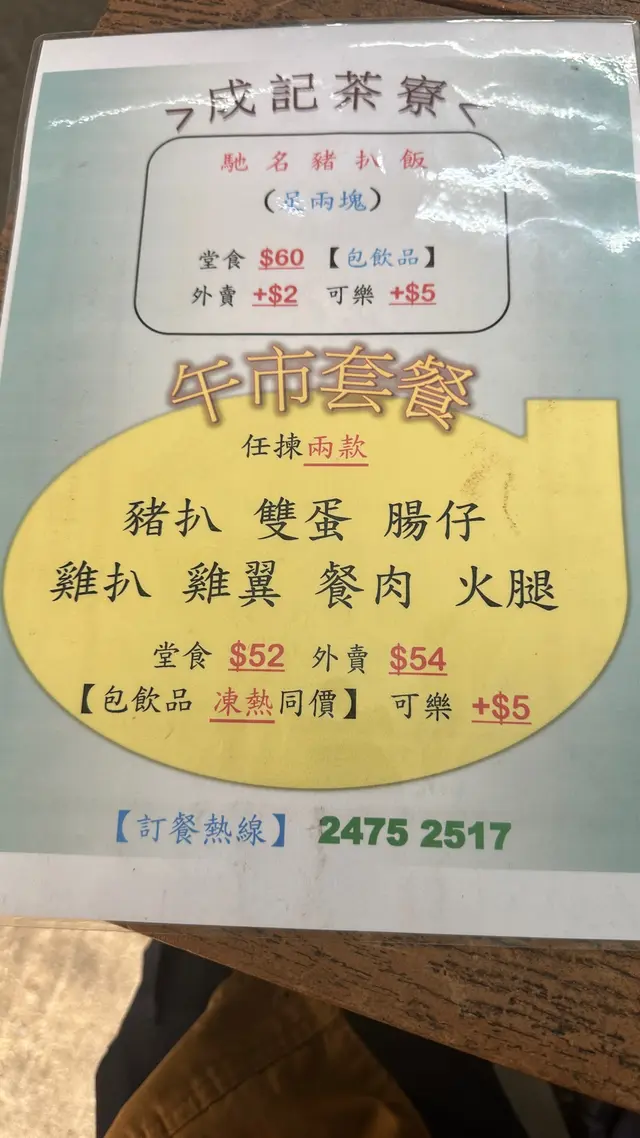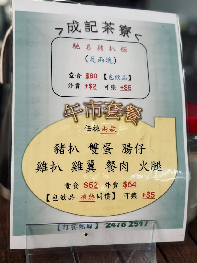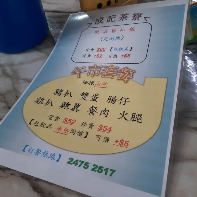 成記茶寮 (元朗) 網址: https://s.openrice.com/QrbS0JY8000 地址: 香港元朗建業街街市地下C8號舖 電話: +852 24752517