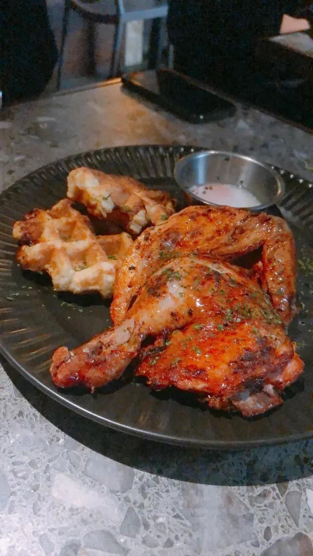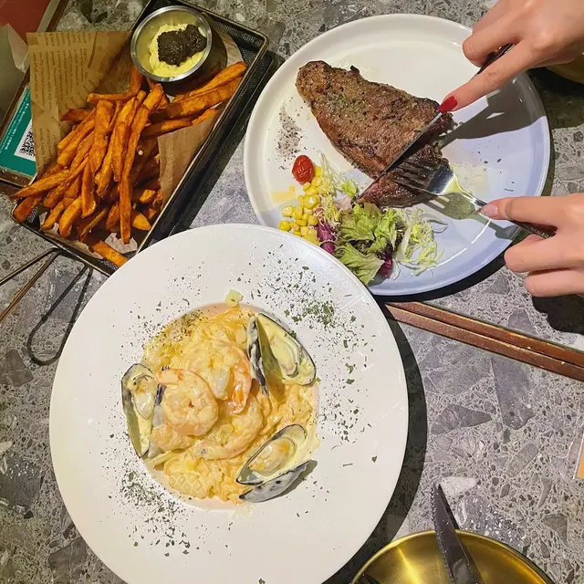 上環一直俾我一種感覺都係多貴價嘅餐廳🍴不過最近試咗一間真心要推薦嘅平民版高質西餐廳位於上環孖沙街,系一間樓上舖,地下係廚房,要上一層樓梯就係餐廳地方唔算話好大,不過位置都幾好坐。吾太逼…我哋叫左一塊西冷牛扒🐮 $148 8安士。雖然佢唔係好厚身但勝在夠平,肉質都容易入口唔會太過靭,呢個價錢算係不過不失蒜香🧄芝士排包 $38 一放低冇諗過原來係咁大個包🤣🙈面頭有滿滿嘅芝士,再加上邪惡嘅蛋黃醬,咬落去脆卜卜排包,超級滿足😋😍黑松露番薯條$58 一大兜番薯條😍配上自家調製黑松露醬,不過有啲美中不足就係番薯條吾夠脆,偏淋脆辣一字單骨雞翼$88/10件 名副其實脆辣,辣嘅程度比起麥當勞嘅脆辣雞翼會偏向辣椒d🙈食左1-2隻已經有少少頂唔順🥹唔係太食得辣嘅我, 不過真係夠哂脆口😆整體嚟講呢一間價錢合理大件又抵食!喺上環嘅地段算係一班打工仔嘅選擇😆…查看更多