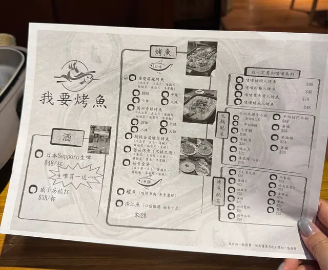 大家超級鐘意食魚就揀左<我要烤魚> ♨️🐟 重點係餐廳除左有烤魚,仲有串燒啊🍢🍡抵食之餘選擇多🪅啱哂鐘意食串燒嘅朋友✨串燒有1️⃣0️⃣款仲有甜品🍮特色飲品🍺環境以木系及加入心思特色畫配襯🪵🖼️坐位相對寬躺 🛋️亦有好多打卡位 📸♨️🐟 烤魚有款可揀- [ ] 鱸魚(啖啖魚肉,魚香濃都)- 清江魚(口感嫩滑,油香十足)✨重慶麻辣烤魚 揀 清江魚 中辣🌶️🌶️ $328送6️⃣配菜 🔖大豆芽,土豆片,蓮藕片,娃娃菜 萵筍片,日本黑魔芋 💠烤魚必叫之選,我地叫左清江魚🐟口感嫩滑極重魚香,再加上我地叫嘅係重慶麻辣中辣,烤魚上枱時香味𣾴鼻🌶️湯底極濃郁男朋友食量頗多但出奇地夠食嘅👥最鐘意係…烤魚有6種配菜分量唔少👍🏻男朋友大讚清江魚肉質真係好滑骨真係甚少🤏🏻魚尾魚邊仲好脆口😎啱哂我鐘意香口嘢嘅人 ✨手切鮮封門牛柳 🐮$48✨廣島蠔 兩隻 🦪 $48✨功夫萵筍片 🎋 $22✨四川寬粉 🍜$22✨炸魚皮 🐟🪶 $22 💠串燒烤類🍢✨手工雞皮串 (2串起)🐔🪶$12✨鹽燒牛舌芯 $28/串✨孜然羊仔柳(2串起)22/串✨鹵水豬大腸(2串起)16/串✨孜然蒜茸豆皮串(2串起)$14/串✨ 陀地燒茄子 32/條✨鹽燒雞軟骨(2串起)$14/串💠餐前小食類 🥢✨ 黑松露有皮薯條 $28/份✨ 粟米墨魚餅 $28/份💠 無酒精飲品 🫗✨ 大大啖水果茶(百香果) $28✨檸檬薏米水 $22嚟杯薏米水好解渴清爽解油膩✨杯裏滿滿薏米口感十足 Fresh 感覺出哂嚟🌬️…查看更多
