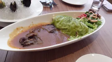 8:03取輪候號碼,8:29入座。。。等候期間有5張吉枱。。。等待不是一個問題,而等待的時候有多個4個職員見到有人等,但竟然沒有一個人走過來安排座位,個個見到都當看不到。總之完全讓你感受零存在感。結果客人自行入座。入座後,穿黑色制服的女待應滿場飛,邊做邊掟餐具。餐廳的碗碟少不免破損。餐廳內會時不時出現喪屍待應及藍色手套女郎。當然少不了衣衫不整的待應,總之不想看的春光也能看到。如果還想看見廚房的工作人員,只要望望樓面就會看到他們美妙嘅catwalk。食物就真係充滿特色。頭盤有又酸又凍的忌廉湯,加無味沙律。主菜有重味海水蟹,還有一定不會再食第二次嘅炒飯pizza。…查看更多