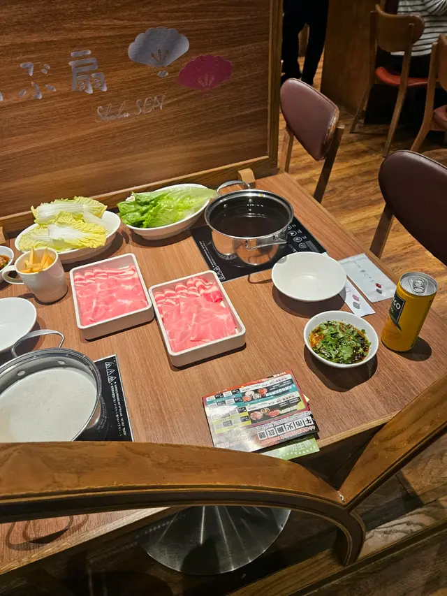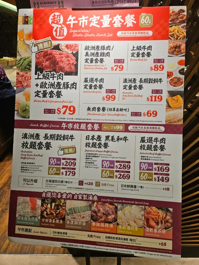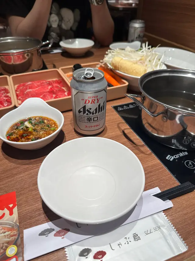 APM 出番地面,向左邊行,有一座叫 ‘’1 亞太中心‘’的商業大廈,呢邊有十間八間餐廳,今次就黎試下呢間“扇火鍋”食開shabu shabu的一定認得呢個餐牌,同牛陣有9成相似,除咗靚牛的選擇少d之外,連湯底既名同埋圖都一樣,估計佢背後其實係牛陣集團咁就好啦,即係信心既保證。呢間店位置都好充足,除咗一人一鍋之外,中間仲有d枱可以一齊share一個鍋既我地今次揀咗澳洲牛嗰個餐,食90分鐘肉類方面呢,今次試咗澳洲牛肉、豬肉、同埋牛舌。三款當中最好味係牛舌,夠哂軟滑,厚薄適中而牛肉同豬肉都偏瘦,不過shabu shabu 黎講,瘦有瘦好,可以食多幾碟蔬菜既選擇好多,仲要好新鮮添,職員都好落力添加配料丸類,菇類及其他蔬菜都有好多選擇,今日試咗個牛丸超好食,直頭似平時自己會買既濃汁牛丸,另外有款心型魚蛋都好味醬料都有好多款,特別喜歡有好多紅綠辣椒粒、蔥、蒜等呢d新鮮調味料,感覺食落健康d飲品方面,熱茶有不少 twinnings 選擇凍飲有各款汽水、有氣VLT、烏龍茶等可惜,甜品就只有呢2款,烤蕃薯味偏甜,個人喜歡乳酪味多D,個雪糕筒係一般威化筒,食到尾有少少稔,麻麻地整體來說,呢間 shabu shabu 係水準之作,價錢合理,加上唔駛等位,唔駛諗一定有下次查看更多