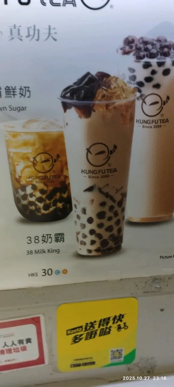 飲過好多次功夫茶啦最近飲竹園分店比較多推薦38奶霸 有三款配料好滿足不過杯野好甜 記得要較甜度見新出咗朱古力奶蓋 飲咗朱古力奶蓋綠茶 半糖 好味唔會好怪 朱古力味都幾濃 就係普通奶蓋多咗份朱古力味另外想表揚員工態度好nice 有個戴眼鏡嘅後生仔員工