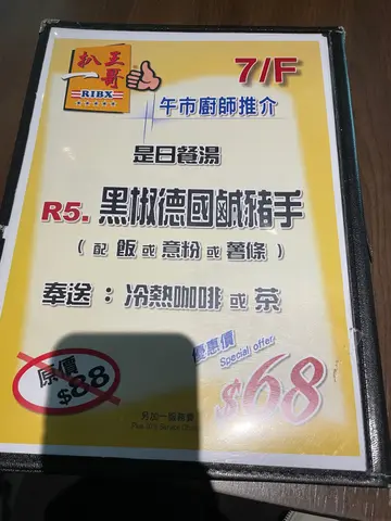 今日叫咗豬手午餐,$68 包餐湯嘢飲,跟埋意粉同埋粟米以呢個價錢同份量嚟講其實真係抵食,可惜質素同以前食爭一大截,湯同嘢飲唔評論啦正常水平,至於豬手係幾大舊,圖片影出嚟嗰時我已經食咗幾啖,但係啲肉又鞋又乾,皮嘅地方還好,都叫食到落肚,但係去到中間啲肉好難咬得開,係要夾硬吞落肚先食到,最後食到一半放棄咗。至於意粉係扁意粉,味道正常但係偏冧。最後埋單連加一$75,價錢係幾平,但係咁嘅質素冇下次。以前疫情期間成日食,午餐又平又好食,但係到而家做到有啲起色就hea做,又話準備開另一間叫‘扒X X王’嘅餐廳,咁嘅質素真係遲早執笠。
