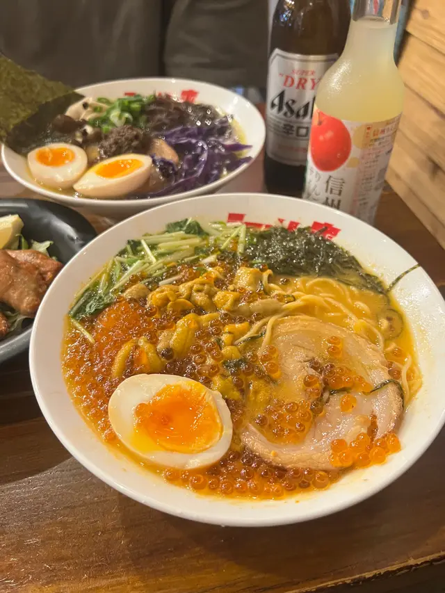 日本昭和懷舊街角Feel!期間限定雙倍海膽三文魚子拉麵勁澎湃來到「拉麵來」,都會有種時光倒流嘅感覺。呢個以昭和年代為主題嘅拉麵屋,令人一踏入就瞬間「穿越」去日本街角。今次仲好幸坐到大玻璃窗前面,一邊望住街外車水馬龍嘅夜景,一邊享用熱辣辣拉麵,真係寫意又具情調。🍜 雙倍海膽加三文魚子黄金海膽三文魚子拉麵餐牌上有超過十款拉麵同拌麵選擇,另有數款期間限定款式,季節感滿溢,令人每次嚟都有新驚喜。當晚我就揀咗期間限定「黃金海膽三文魚子拉麵」,再升級為「雙倍海膽加三文魚子」——完美俾我呢啲海膽控大滿足! 🧡💯呢碗拉麵用上加拿大海膽,配以香濃雞白湯為底,加入海膽豐厚鮮香;湯汁金黃順滑,入口濃郁卻不膩。上面鋪滿新鮮又光澤閃亮嘅三文魚子、溏心蛋、自家製叉燒、水菜同紫菜絲,色香味俱全。麵底可揀軟、適中或硬身,仲可自行加配料。貼心嘅係,店方特備「蟹酢」俾客人調味,為海膽湯底去腥提鮮,令味道更顯細膩層次,鮮甜之中多一份深度。🦐 秘製自家手打脆炸蝦丸除咗主角拉麵,當然唔少得小食加持。我點咗「秘製自家手打脆炸蝦丸」,外層金黃酥脆,咬落去內餡彈牙多肉,真材實料。配上店家特調酸甜醬汁,香口好味! ❤️🔥🍢🍇 麝香葡萄梳打飲品選擇「麝香葡萄梳打」,淡淡果香帶少少甜氣,清甜解膩,同拉麵嘅濃厚湯頭互相平衡。💚🍹拉麵來亦有提供自家製香辛高菜、生蒜、芝麻等調味料,供食客根據個人口味加入拉麵享用。對我嚟講,呢啲細節正正顯示出店家對餐飲體驗嘅用心。💖享受呢度嘅昭和懷舊份圍、💖鍾意佢哋插畫風格嘅菜單、💖喜歡充滿創意嘅食材配搭、正宗又有特色亦都感謝店員嘅詳細介紹🙏🏻臨走前已經諗好下次要再嚟試「大閘蟹味噌雞白湯粒麵」🦀同「廣島牡蠣牛尾湯拉麵」🦪,聽個名都夠吸引!…查看更多