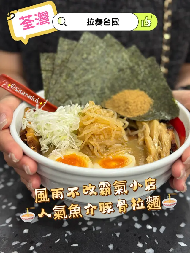 #chuchu食在荃灣📍 拉麵台風荃灣the best拉麵🍜 住呢頭無人唔識,原來都食左成12年,真日本師傅駐場,搬咗過幾個舖位坐得舒服咗,多咗好多位,但門口都係繼續排長龍!不過快咗好多,今次排咗15分鐘左右only ! 老闆好鍾意日本動漫,全部都係Figure,如果同好一定好happy😏💡真係好旺的,要預時間排一陣—————————————————————❣️ 魚介豚骨拉麵 $78✨追加咗個半熟蛋(+$18)湯底超!濃!有魚介粉係面頭,超級鮮香同豚骨湯底好濃,一定要先飲啖湯🍜 叉燒半肥瘦啱啱好,入口即融!追加半熟蛋係必須吧,溏心蛋黃撈埋湯一齊食!.❣️ 伊台風 $98都追加咗個半熟蛋(+$18)#chuchu推介 次次都係叫呢個食咗起碼10年!呢個係蕃茄湯底,最特別叉燒上面係有芝士🧀仲要係炙燒過,可以拉到絲,超級香!芝士同蕃茄味好夾好出,同埋啲拉麵好彈牙,軟硬適中!✨只係叫咗100g,所以可以轉其他配料,今次轉咗紫菜.❣️ 烏龍茶 $12食完濃湯拉麵啜返杯冰涼烏龍茶,爽啊~🍵 解膩一流!.💬 出咗家台風,係屋企都可以食到😋—————————————————————不專業評分👅好味指數: 9/10 💰性價比: 8.5/10👍🏻推薦: 9/10 —————————————————————🏡地址: 拉麵台風 (荃灣)地址: 香港荃灣大河道85號寶成樓地下9號舖👉🏻旺角灣仔日本東京🇯🇵都有分店!🕑營業時間: 12:00 -22:00————————————————————— #chuchu食日本野 #chuchu食拉麵—————————————————————Follow🐷 @chuchu_hkfoodietag埋你啲朋友仔like下我啲po♥️需要你的支持喔🥺🙆🏻♀🐷💬每一篇食評都好認真打架…查看更多