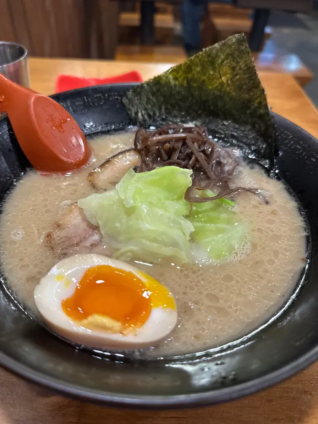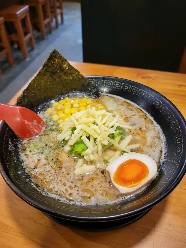 查地圖以為黃埔 B 出口過馬路對面好方便,實情我打埋電話問都係要搵咗陣至去到,不過可以試到想食嘅都無乜所謂,況且嚟呢度係因為要等麵包舖關門收麵包,第一次嚟做義工心情特別,雖然三號風球不過風平浪靜。是日星期五,嚟食麵嘅人都唔少,一家三口、單身男女、仲有我和同事等,不同嘅組合都有,好受歡迎。睇識揀介紹一定食嘅限定天王,原來係胡椒拉麵,心諗可能會辣,點知相反碗面勁多芝士,湯夠熱,麵更軟,紫菜味蛋叉燒都無得彈,可惜趕時間無飲埋碗湯,睇吓個碗底有無獎,我配咗支波子汽水,埋單價錢唔貴,完全勁…查看更多