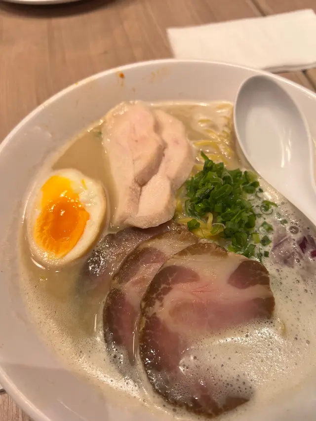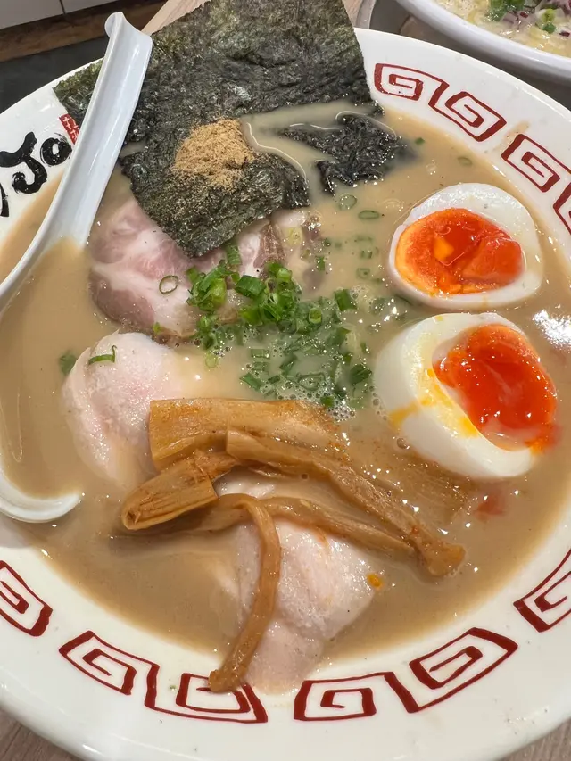 今日去咗圓方同小朋友行街,行到攰,小朋友話想食麵,所以就食呢間jo拉麵🍜本身小朋友話想食低溫叉燒拉麵,但未到6點已經話賣晒,咁就查詢侍應,有邊隻拉麵味道會比較淡味啱小朋友食?同埋一定唔可以有辣味!侍應們一致推介特製東京醬油拉麵🍜好啦,咁就落一碗俾小朋友。同時我們亦要求麵底要煮腍啲..因為比小朋友食,太硬佢哋咬唔開。點知嚟到碗麵上面會有(辣筍)🫢向侍應反映,佢哋都好好,即刻承認出錯,立刻換過一碗俾我哋,最後,小朋友好俾面😏拉麵食唒,我再加多咗兩碗粟米俾小朋友,小朋友食得好開心☺️☺️至於大人嘅拉麵🍜雞白湯拉麵🍜食落去都係覺得豬骨味好重,冇乜雞味嘅,拉麵唔係好索到湯,可能食沾麵會好啲🤔拉麵中規中矩。反而個蔥花牛舌幾好食🤪👍👍切到薄身,炒到好香,咬落爽口,好惹味👍下次再嚟嘅話,想試吓佢嘅低溫叉燒拉麵😆…查看更多