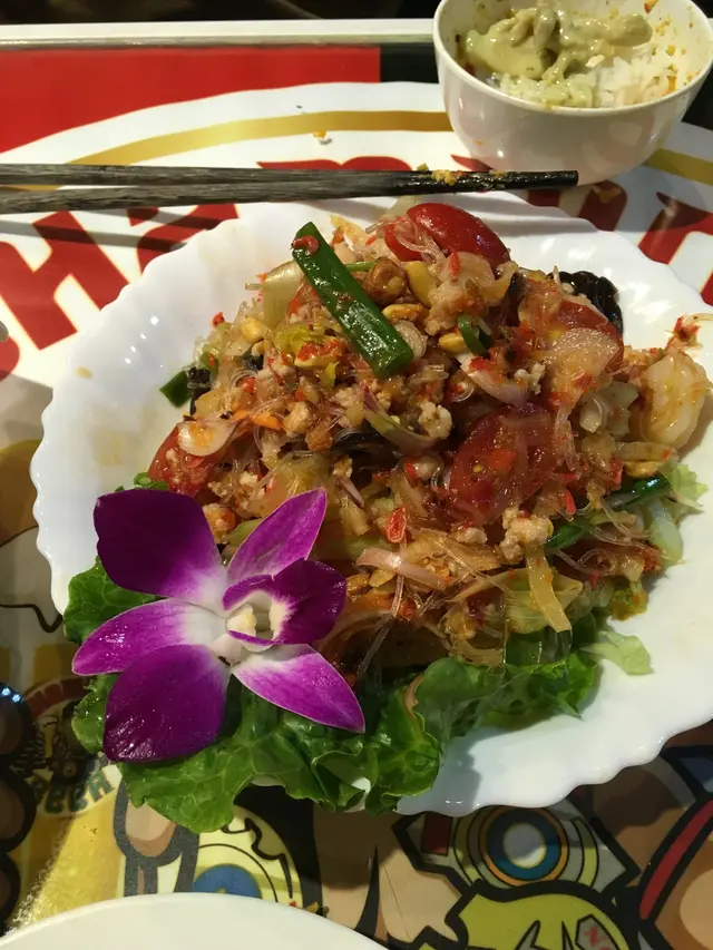 有一個frd子特別迷戀泰國菜已經候住呢間餐廳好耐咖啦 終於有一次食到兩個人食唔得多野只哎左一個沙律一個青咖喱雞再加一個padthai(唔記得影)其實味道嚟講都唔錯嘅首先講下個青咖喱先啦有時候呢啲好容易就甜得制或者喺椰奶落多左搞到成件事好稀呢碟就所有野適中 鐘意佢唔會甜死人少少咸多多趣 食材方面好鐘意佢加木耳 沾上咖喱汁的爽口木耳送飯真係一流不過最好就再多少少茄子呢最好哈哈另外一個就喺粉絲肉碎沙律酸汁加上微微嘅辣味撈埋啲粉絲送入口真係超級正呀可惜就喺...可惜就係!!!佢等我地食完啲澱粉先嚟呢味送 呢到真心sad如果唔喺嘅話一定喺超級開胃而且啲肉碎都好好味所以嚟講其實都okay嘅…查看更多