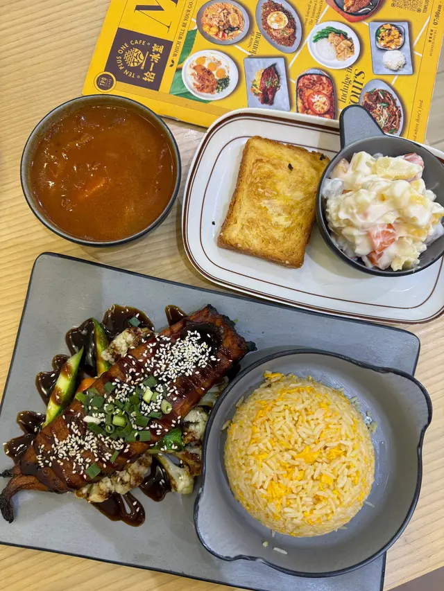 【觀塘區】【拾一冰室】同美女朋友去觀塘做嘢,有啲肚餓,喺附近搵間嘢食吓。見呢間喺大路口嘅好似幾企理就入去,原來係新開嘅新派冰室嚟。店員都幾好服務,唔 chur 單,又識親切。我哋 share 食,侍應推薦我哋試佢哋有鑊氣炒粉麵飯裏面 $68 嘅「鮮瑤柱鮑魚福建炒飯」。估唔到又真係幾好食喎,足料之餘,最大嘅亮點係有四隻真鮑魚仔,唔係食齋鮑魚呀,掂。跟住我試熱辣辣鐵板餐 $108 嘅「脆皮雞扒拼香煎鵝肝」跟蒜蓉汁同焗薯,有得揀焗薯真係幾好。個餐另外仲有羅宋湯、丹麥多士同雜果沙律,都唔錯嘅,幾有誠意。估唔到茶記有鵝肝食,試埋 $68 嘅「鵝肝菠蘿包」,睇吓點細味層次中的驚喜,配埋炒蛋的確有質素,好。嘢飲我哋飲咗「奶茶紅豆冰」、「冰凍雜果賓治」同「熱奶茶」,美女朋友話個奶茶紅豆冰幾好飲,而我飲後兩者都好,尤其個奶茶。埋單 $262,抵喎。。。(地址:觀塘偉業街180號地舖)#1amfoodie #foodie #hkfoodie #thatfoodiething #hkfood #food #instafood #yummy #foodlover #delicious #foodies #tasty #globaleats #tastyfood #foodpics #followforfollowback #love #eat #openrice #google #xiaohongshu #1am觀塘區 #觀塘 #拾一冰室 #鮮瑤柱鮑魚福建炒飯 #脆皮雞扒拼香煎鵝肝 #焗薯 #羅宋湯 #丹麥多士 #雜果沙律 #鵝肝菠蘿包 #奶茶紅豆冰 #冰凍雜果賓治 #熱奶茶 #1am1854 #1ambackup…查看更多