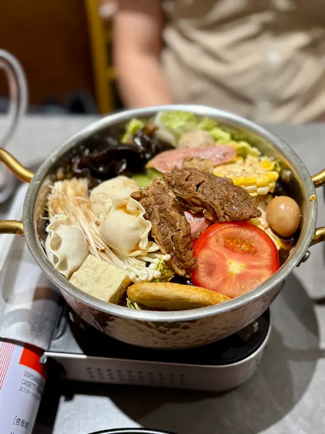 今日響寶琳行街見到喱間餐廳見入面坐位好舒適咁地方光猛幾靚一於坐低食吓嘢再行街門口見到有個台式小火鍋好似幾好 就入到試一試揀咗日式壽喜燒湯底佢包埋沙嗲牛肉手工麵美國Prime Grade 牛肩胛Movenpick 雪糕珍珠奶茶$128有咁多樣嘢👍🏻同行人士就叫咗咖喱薯仔雞扒拼腸仔飯凍檸茶啲食物都嚟得幾快店員亦都好好招呼👍🏻店舖都幾好生意 一路食飯一路都見外面有人排隊我見佢啲晚餐都好似幾靚下次有機會再去試呀…查看更多