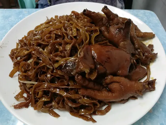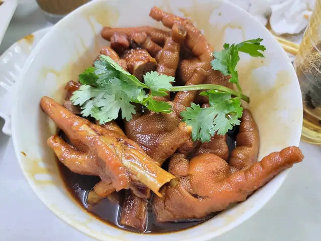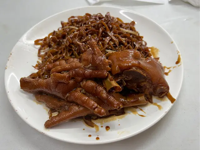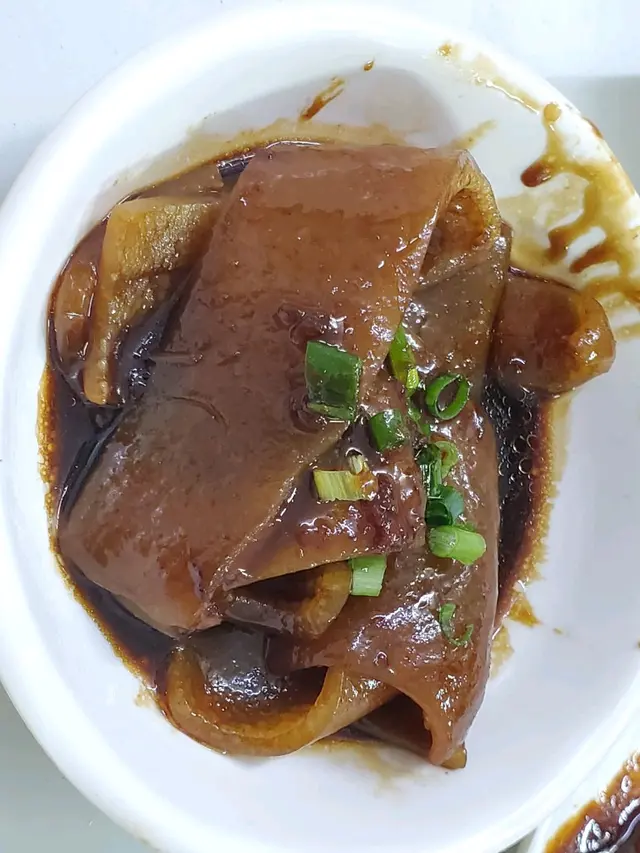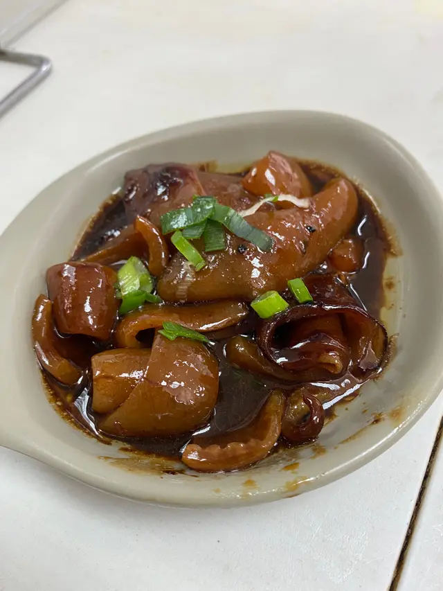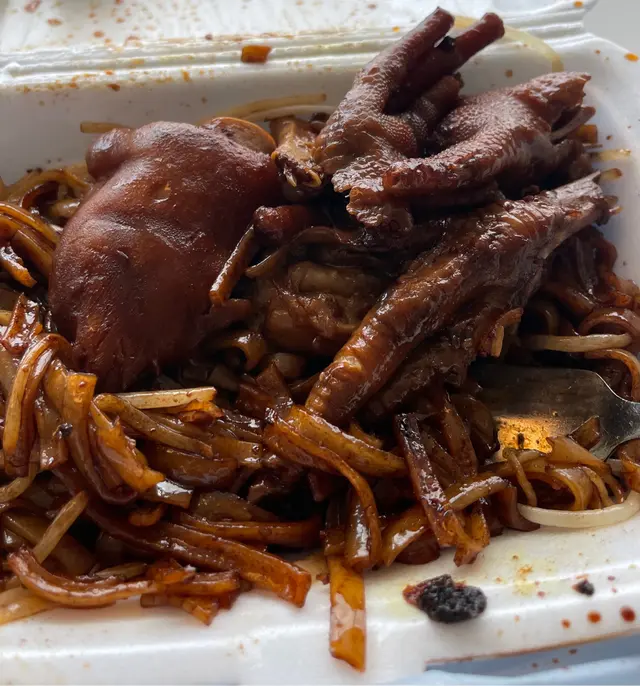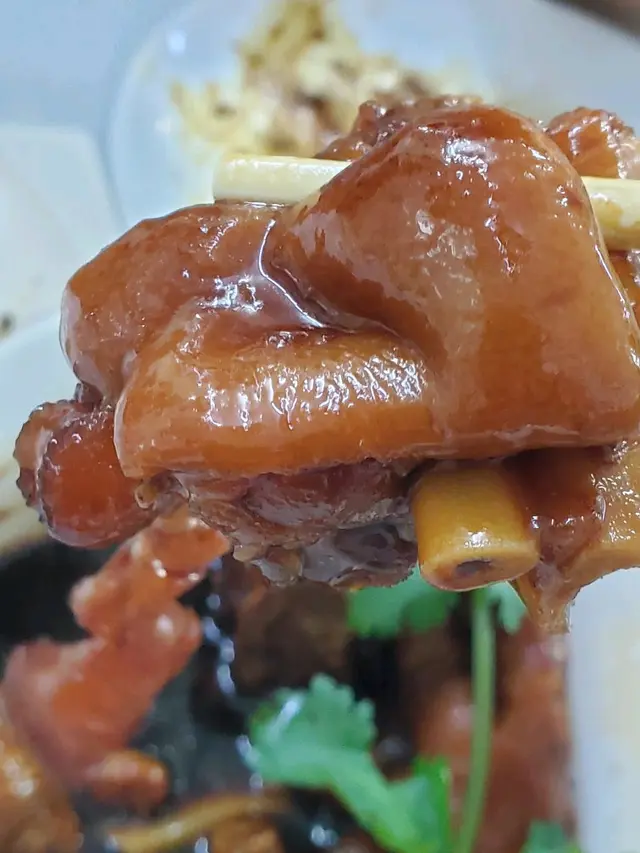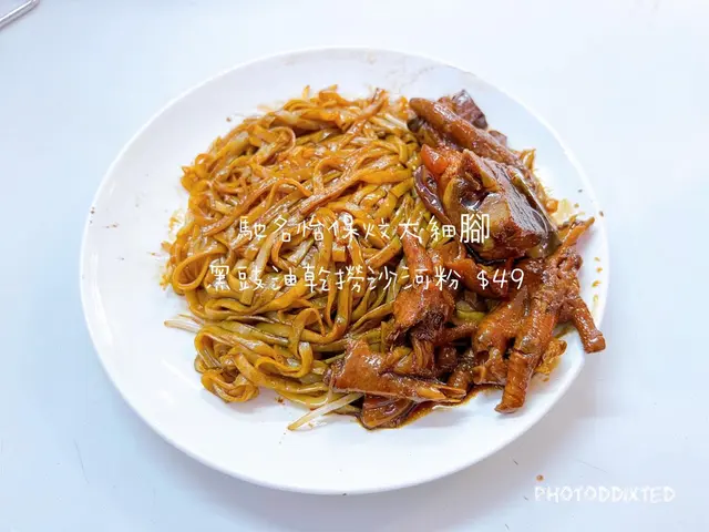 個黑豉油甜甜地,同我想像中有啲出入,黑豉油同個粗麵都幾夾,入晒味,味道唔錯,不過就比較油;大細腳係指豬腳同雞腳,豬腳得1隻,雞腳就有3隻,炆得好琳好入味