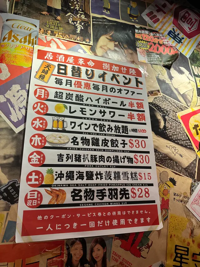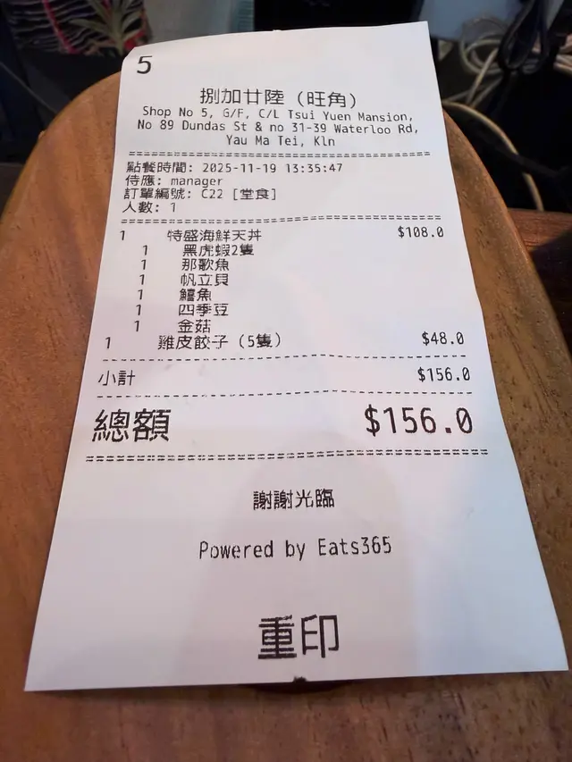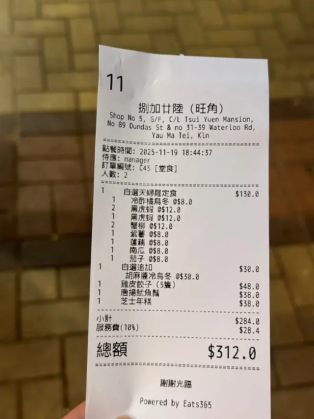 捌加廿陸天婦羅居酒屋 (旺角) 網址: https://s.openrice.com/QrbS0opKC00 地址: 香港旺角窩打老道31-39號翠園大廈一期地下33A號舖 電話: +852 90835149