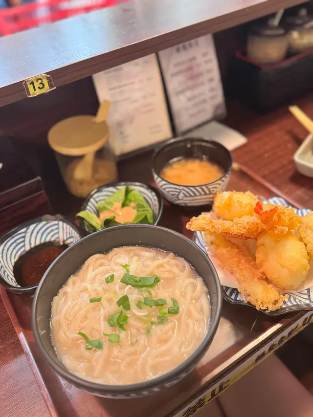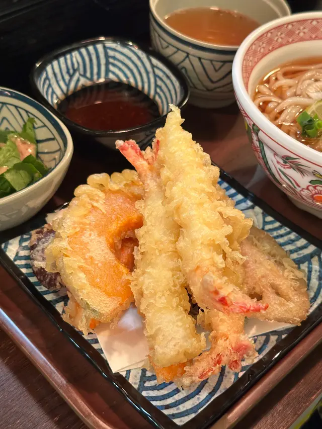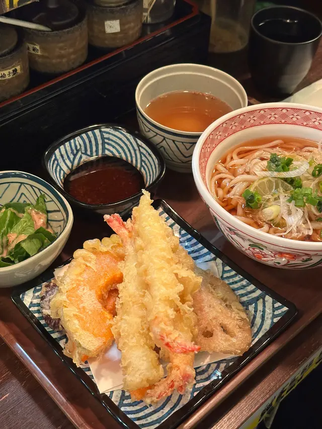 雖然當日無緣品嚐招牌的活龍蝦天婦羅,但這家充滿和風裝潢的小店,仍以出色的炸物留下深刻印象。環境舒適,樓上雅座更顯愜意,且價格親民,絕對是物超所值之選。小食拼盤 $78拼盤集結多款炸物,各有特色。雞軟骨香脆爽口,墨魚粒彈牙鮮美,炸雞鎚則肉質嫩滑又多汁,整體表現相當出色。原隻軟殼蟹天婦羅 $68軟殼蟹炸得外層酥脆而不油膩,內裡肉質鮮甜,口感層次豐富。蒲燒鰻魚丼 $88鰻魚厚身肥美無骨,鋪滿濃郁的蒲燒醬汁,與白飯完美融合,每一口都讓人滿足不已。自選天婦羅定食 $112定食附湯與沙律,更可自由搭配湯底、配料及主食,打造個人專屬組合,體驗極佳。這次選了蕎麥麵配海老味噌湯底,麵條順滑,湯頭濃郁,再灑上櫻花蝦,香氣十足。配料方面精心自選左五款。黑虎蝦:爽口彈牙,鮮味突出,必試之選珍寶蟹柳:粗身飽滿,一絲絲蟹肉口感十足鮮帶子:大粒軟彈,鮮甜味美廣島蠔:外脆內軟,蠔味濃郁南瓜:香甜可口天婦羅整體水準甚高,炸漿薄脆不厚,完美鎖住食材原味。淋上天婦羅汁,鹹甜交融,更添風味。…查看更多