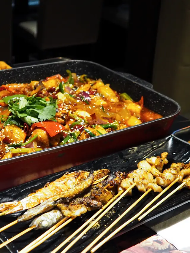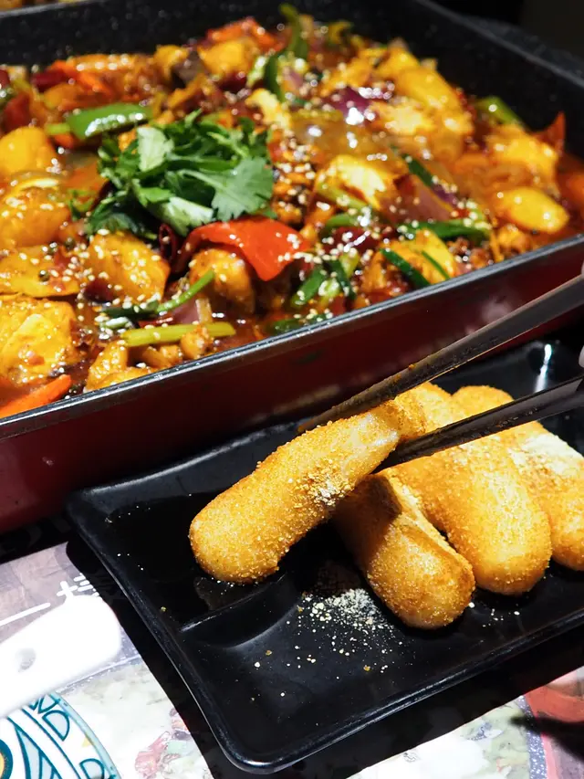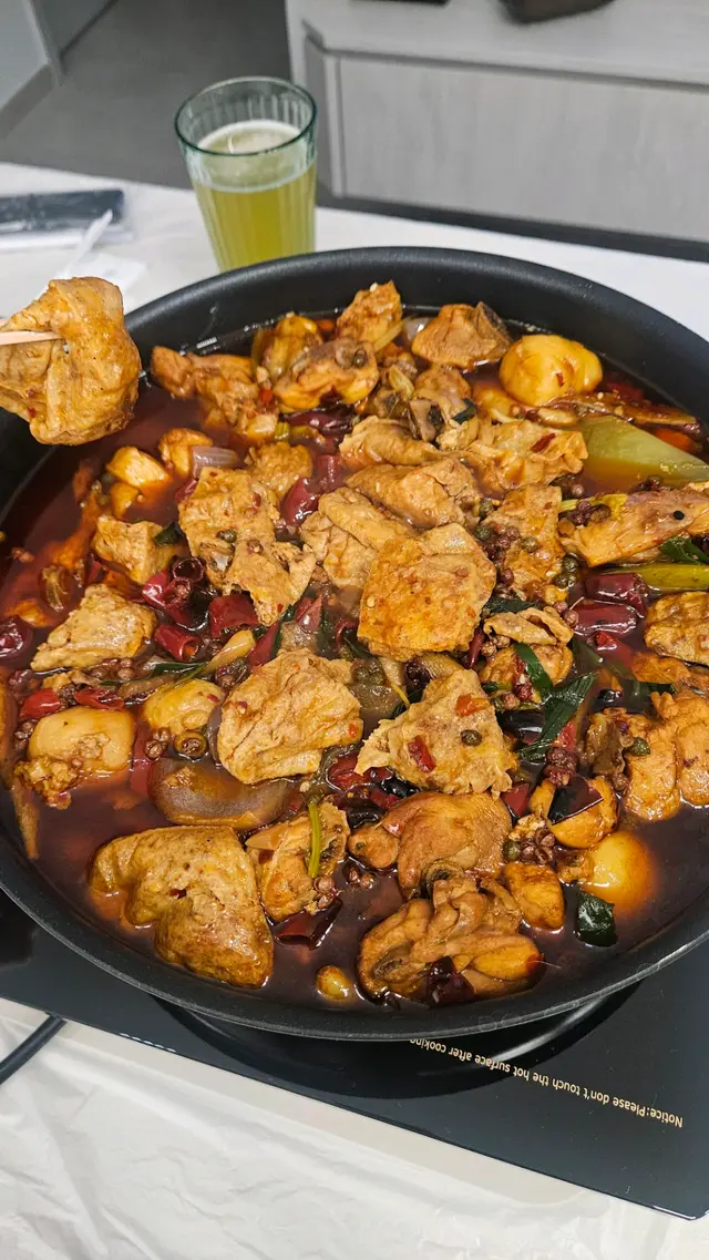 ⟡川式大盤雞 $238真係好大盤好足料~雞肉肉質都幾嫰滑而且好入味 仲有好多配料添唔係幾食得辣嘅可以選擇嗌BB辣 一樣咁惹味!⟡串燒 (10串) 試食價 $88有豬頸肉x1、雞軟骨x2、雞皮x2、魷魚鬆x1、海蝦x1、雞肉x1、多春魚x2調味做得啱啱好 唔會太咸呢個價錢真係好低食!⟡黑糖糍粑 $42好煙靭軟糯 甜度啱啱好!可以用黎解辣~⟡鮮果冰茶 $48有隻熊仔🧸冰係放喺上面 超可愛的~有好多唔同種類嘅生果 好新鮮!⟡柚子梳打 $38好清新飲落去好涼爽解膩一流!!查看更多