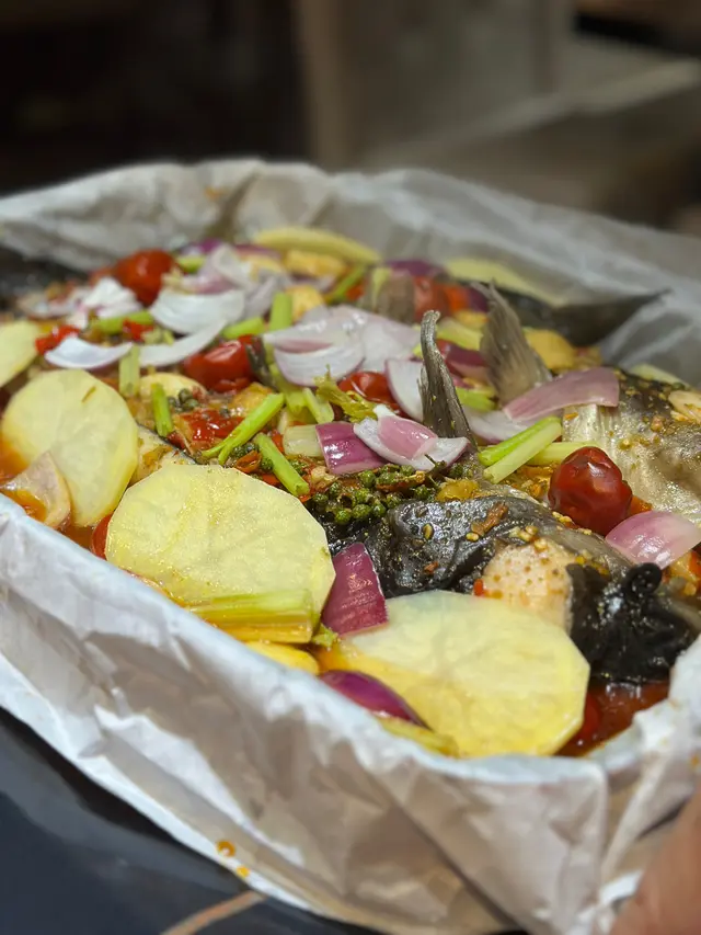 自從係台灣食完青花椒..之後就愛上左哩個味道👅哩間餐廳既紙包魚都有3款味道可以選擇. 泡椒味?香辣味?蒜香味?食得辣既~我推薦泡椒味🌶️ 裡面有我鐘意既青花椒✨原條原條青江魚🐟肉質好結實💪🏻 重點係…唔洗怕骨刺🤍***記住一定要食埋裡面既薯仔🥔 好軟綿綿🤍 條魚好大條😂一份都夠晒兩-3個人食喇. 依家啤酒仲使緊買1送1優惠🍻蔥爆牛肉好送飯🍚 大量京蔥.. D 牛肉超軟🥓公公婆婆都食倒🧓🏻餐廳裡面仲有投影機. 唔知生日係咪可以播埋生日歌呢?🎂查看更多
