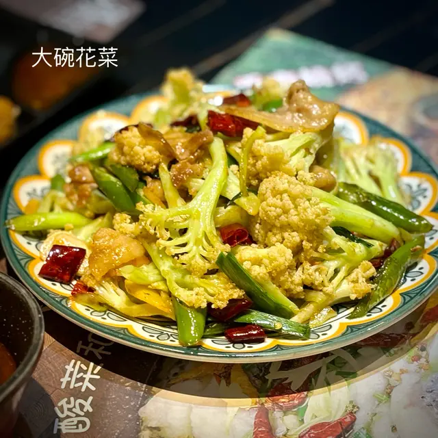 川式大盤雞名付其實大大盤好足料,雞肉嫩滑,配料仲有薯仔、洋蔥、大蒜、芫荽、薯粉、葱、香芹、青椒、紅椒。一上枱感覺既彭拜又惹味!薯仔同薯粉吸收曬大盤雞嘅精華,食起上嚟十分滋味滿足。大碗花菜椰菜花同肉片炒得好香好入味。係wow到我嘅必食菜式!黃金芝士豆腐 炸到金黃色芝士豆腐,中間有流心芝士,加埋泰式辣醬係唔錯嘅惹味小食。菠蘿沙冰香甜、消暑又解辣。這裡食物質素高,好食又抵食。除此之外環境舒適闊落。唯一嘅問題係食物大大份,下次再嚟一定會叫多幾個人 … 咁就可以嗌多幾様嘢!下次嚟已經諗定要試必食冷鍋酸菜魚,仲有我嘅favourite 酸辣土豆絲同埋甜品黑糖糍粑!查看更多