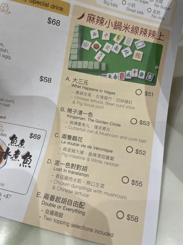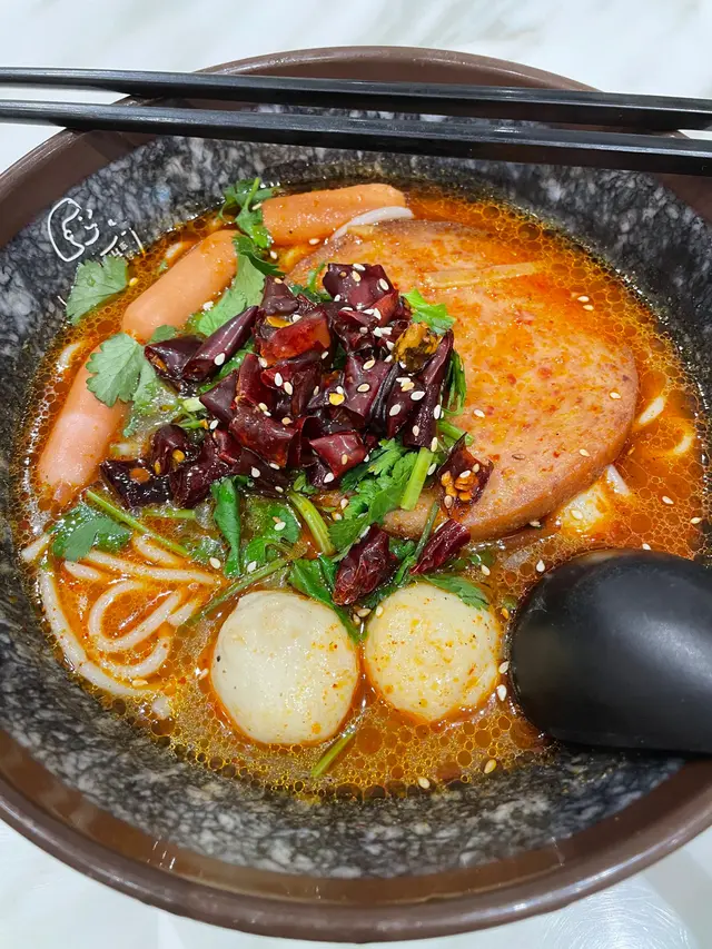 本身諗住去對面嗰間cafe食嘅🤣咁啱好耐無食過車仔麵對腳不由自主地行左入去呢間揀得啱👍🏻3餸麵 $55(下午茶時段減$10)麵底選擇都算多有我少見嘅烏冬同魔芋絲唔想食咁多澱粉質可以點生菜底不錯不錯我叫左魔芋絲,口感煙靭3餸就叫左白蘿蔔、豆卜同牛蒡丸(素食)白蘿蔔好清甜,無渣❤️豆卜吸晒啲湯味,好正湯底揀咗佢地自製嘅205辣醬辣度有後勁😋😋佢地湯底無乜味精食完無口渴嘅感覺👍🏻仲有好多款餸好想試🤣🤣有機會經過會再試…查看更多