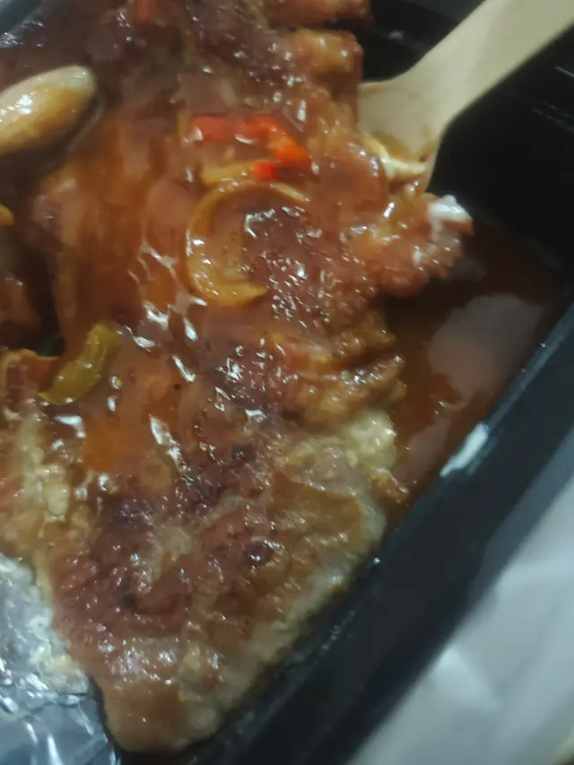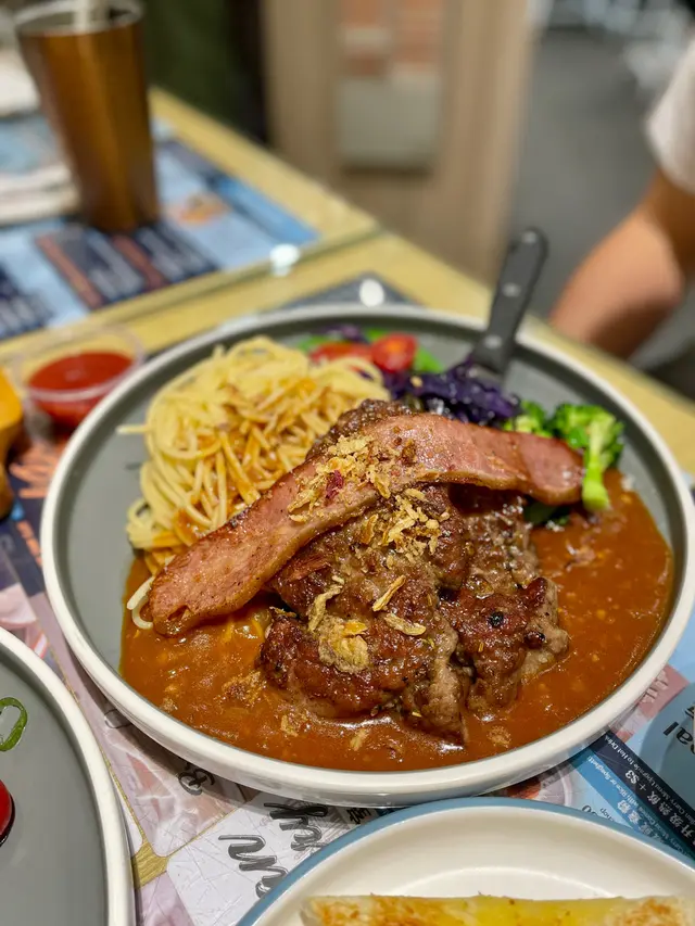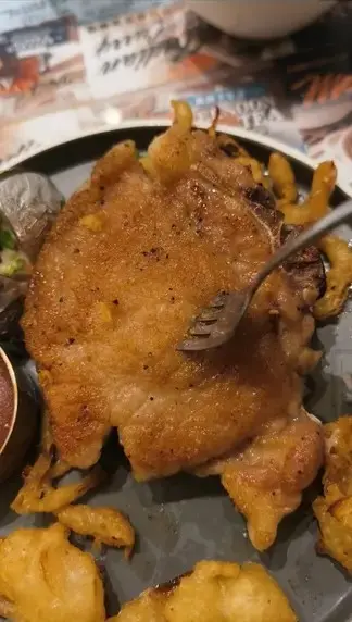 香煎紐西蘭極黑厚切豬扒脆炸洋蔥