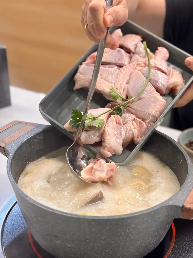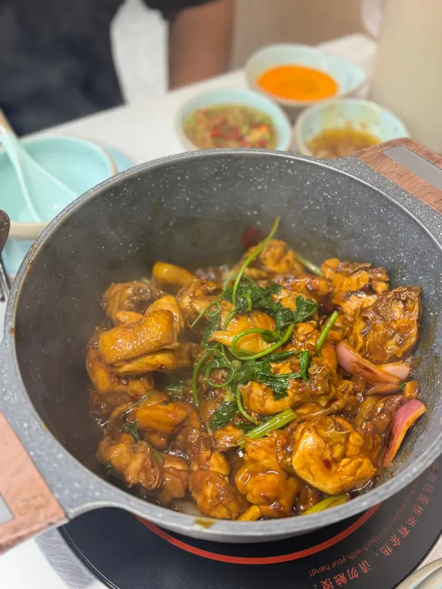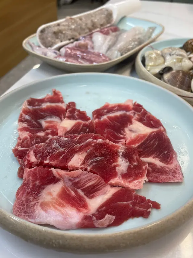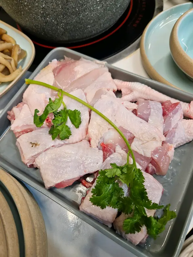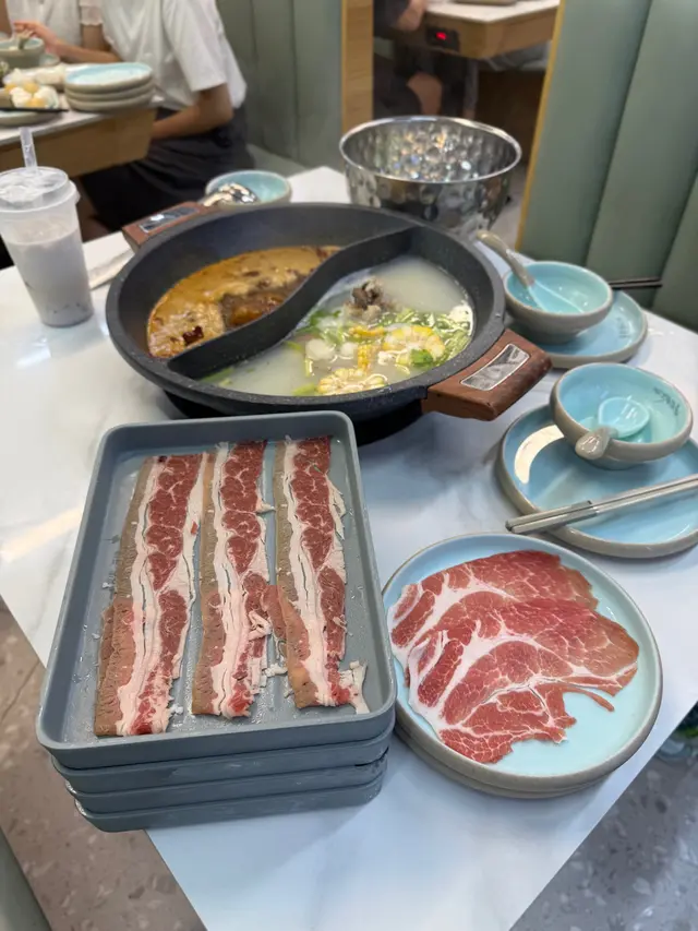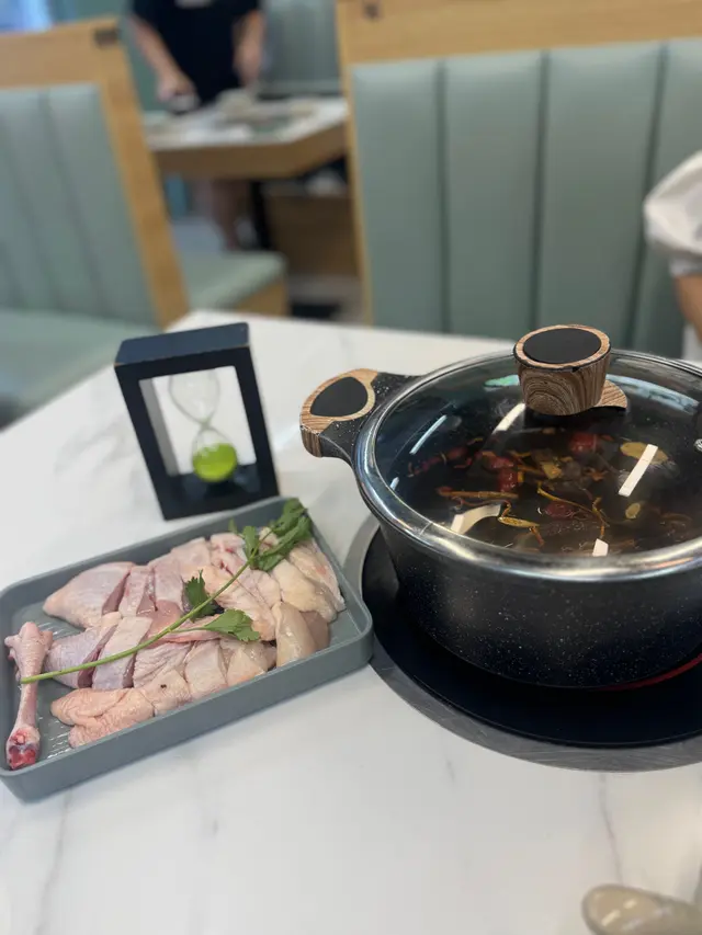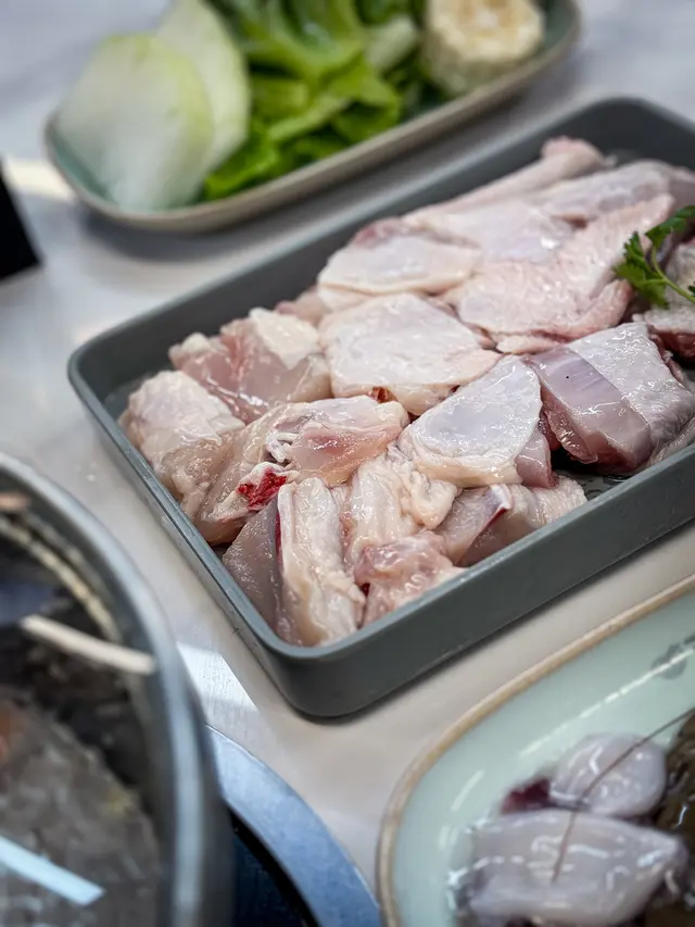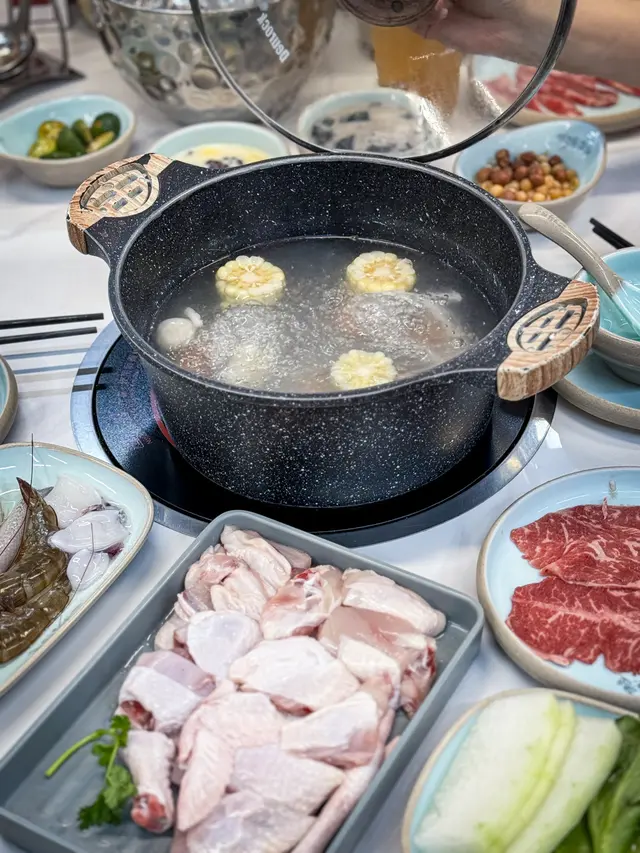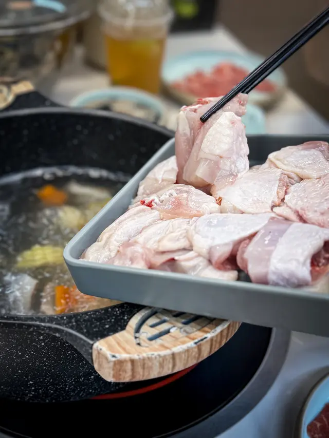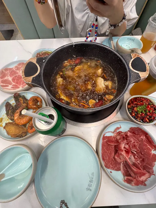 平時好少經過呢個位咁啱經過即刻試吓佢舖頭好闊落光猛任食火鍋嚟講都算好多款食物選擇兩個人去食晚餐第一款,我哋揀咗麻辣雞煲一上去已經聞到嗰浸麻辣嘅香氣估唔到兩個人份量都好多而且就嚿雞都係啖啖肉提大家雞煲一到咗記得加啲豬皮落去吸晒雞煲麻辣嘅精華擺落去一齊煮焗一陣簡直冇得頂呀打邊爐嗌咗豬骨煲湯底個湯底真材實料豬骨入面嘅骨髓食得出係新鮮豬骨完全冇豬臊味㗎仲要配埋水果粟米令到個湯底好甜好想讚吓個員工換湯底打邊爐嘅時候我哋出咗去拎打邊爐嘅食物佢竟然自動自覺幫我哋換晒啲餐具唔使成隻碟都有雞骨喺度牛肉質素任食嚟講簡直係高級牛肉嘅紋理均勻分布好意外竟然有海鮮食啲海鮮全部都勁新鮮而且仲有多款選擇而且佢海鮮係出面平時食任食都好少有勁貼心,食飽之後仲可以飲杯花茶解膩喺出前一丁唔係普通公仔麵記得食雞煲嗰陣煮埋出前一丁先好換湯底啊
