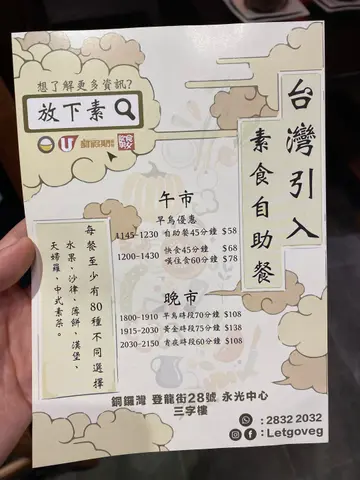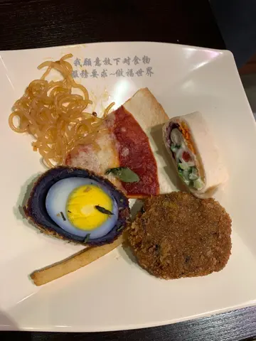 依間喺銅鑼灣旺區登龍街嘅素食自助餐,唔淨係食素,仲係一間社企,好有心。款式都好多,晚餐有分中餐區同西餐區。西餐有pizza、班㦸、薯餅等等。我最中意就係個蘇格蘭炸蛋,用紫薯代替肉品,包住雞蛋再炸,比平時食嘅冇咁膩又健康。另外佢沙律吧都好豐富,除咗生菜等等,都有幾款水果。值得一提係自家製果乾,夠哂心思。中餐就更多元化,有薑醋蛋,唔會太硬啱哂我,唔算好濃易入口。有酸辣紅薯粉,我夾咗幾次,少少辣好惹味。另外仲有娃娃菜蒸粉絲、南瓜炆芋頭等等。佢嘅涼拌青瓜有落到蘋果醋,味道更多層次。我最中意係個炒花菜,爽口鮮甜,又係夾咗幾次。有煎堆同炸饅頭,香口滿足感大。最後糖水有南瓜芋頭西米露,椰香,加上一齊煲過,唔會話味道分離,值得一吃🤘🏻…查看更多