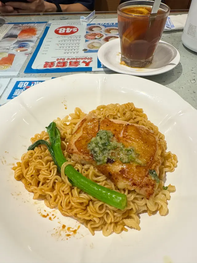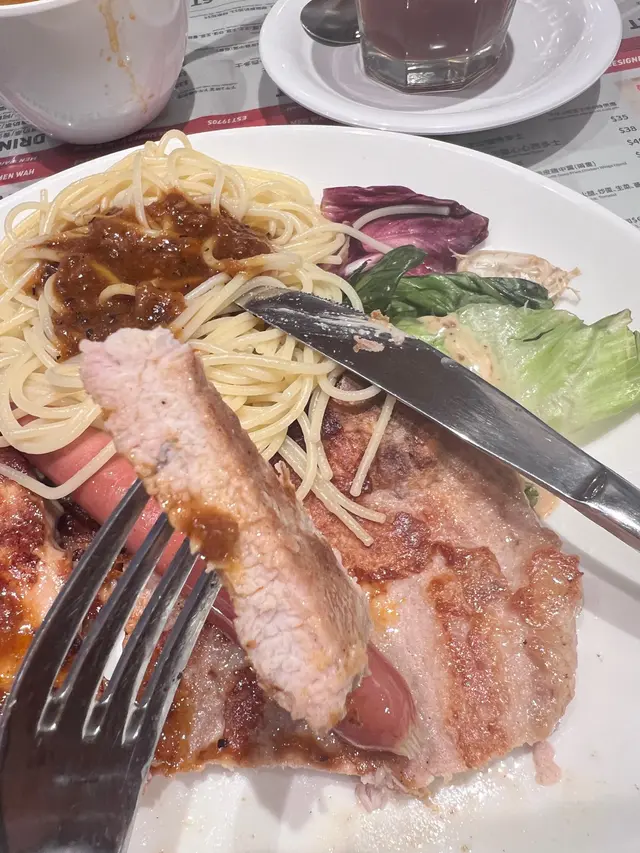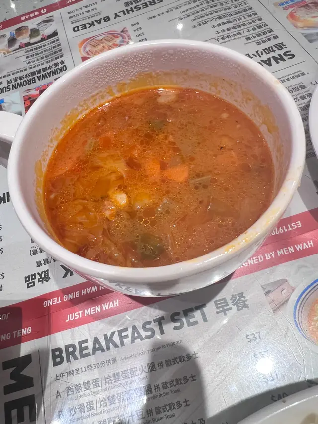 因為有28蚊優惠,所以到此享用early dinner。下單後,用熱水淥一淥餐具,慢慢等嗲牛麵來到。炒滑蛋歐式軟多士 炒蛋邊緣油光閃閃,估計這炒蛋是在grill爐<鏟>熟,加入很多油分,才不會粘著金屬grill爐。 將炒蛋切碎放入沙嗲湯裡,順便去油。厚身烘多士外層少少少脆,中間軟熟。咬一口,很快便恢復原來的厚度~回彈力強。潮式沙茶牛肉公仔麵 沙嗲裡花生碎蒜及其他香料,有甘味。煮到軟綿綿,浸到腍曬的公仔麵,容易咬,麵底味道似丁丁,我喜歡。食公仔麵要有儀態,以叉子把公仔麵卷起來品嚐,方便掛汁,沙嗲湯底也不易弄污妝容/Fling到塊面。後上的熱奶茶 熱辣辣上枱,無茶香但唔削脷,唔鞋口。几天假期,大魚大肉無食菜,其實是希望奶茶的特別功能可以幫忙。可是回家後,等了很久也沒有那個反應。呢杯奶茶唔合格。…查看更多