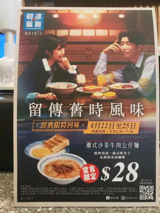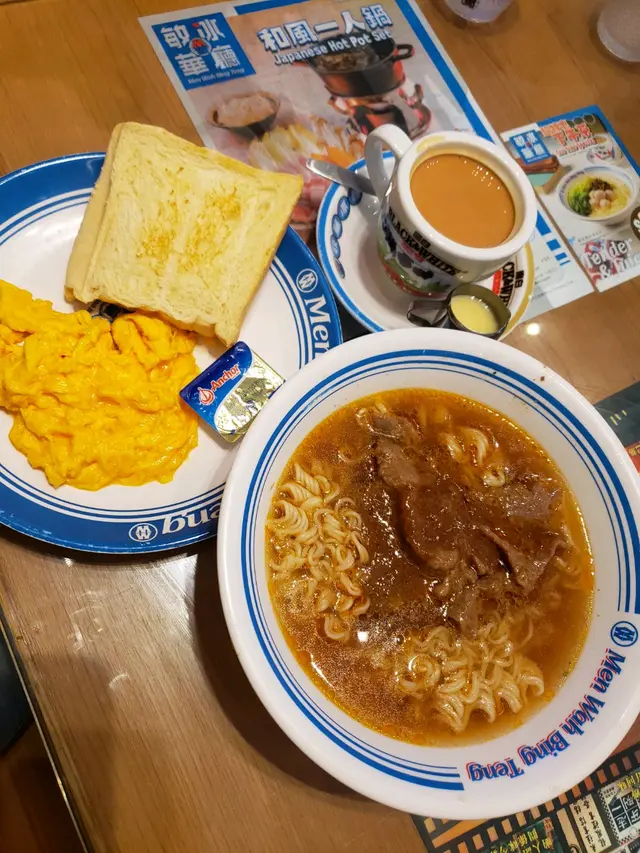至愛的早餐,為一天開始添上了推動力😃敏華餐廳餐牌的選擇雖然不多, 但是以茶餐廳來說 ,他的食物質素可說是不錯,感受到他們用心製作。 即使簡單的食物,也感受到熱辣辣上枱,每款食物味道都颇不錯,只是覺得價錢稍微貴了點。餐廳除了出名的黯然銷魂飯外,我食過每塊义燒也是厚切,一口咬下去,肉汁豐富,有蜜糖甜味,真是有水準。 不過,今早我order了沙茶牛肉公仔麵, 炒滑蛋及歐式多士。我特別欣賞的是公仔麵的質感幼滑爽口,也是彈牙的。另外我亦欣賞他的牛乳炒蛋,很香牛乳味。對我來說食物上枱時仍然能熱辣辣,會令我把那間餐廳加分,敏华就是這樣的餐廳了👍👍查看更多