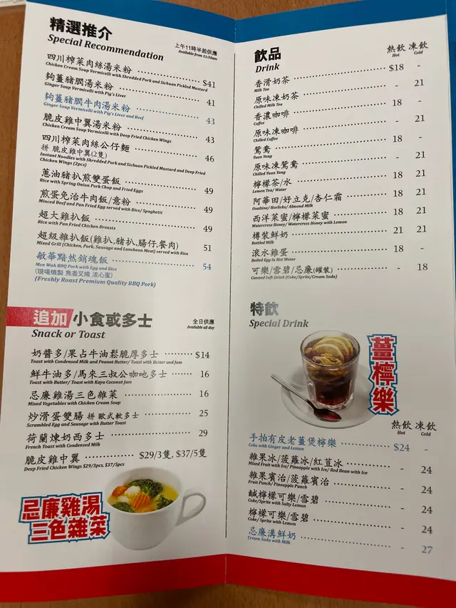 9月26日,不用等待,當時店內只有6成滿。14:33 已完落單。總數兩個餐,1:特餐:超級雜扒餐(雞扒,豬扒,午餐肉,腸仔)+ 凍奶茶. 2: 蔥油雞扒撈出前一丁+熱華田。 超級集扒餐在menu上沒有註明是即叫即煎,及沒有任何提示會制作需時。最後等超過半小時,在第15分鐘,20分鐘,及30鐘時向不同職員查問過是否漏單。可每次都回答這個餐需即叫即煎,需要20分鐘。 沒有任何協助。而同檯的蔥油雞扒撈丁卻在下單後5分鐘內便已到。不明白,為何我個餐只多左一塊豬扒,腸仔,餐肉。便要等超過30分鐘才可以食用。職員態度不好,完全不想理會顧客。餐牌沒有任何提醒字句該套餐需時制作。食物水平跟普通茶記一樣。但人地只需10鐘時間制到上檯。 不建議堤時間的人去幫襯。…查看更多