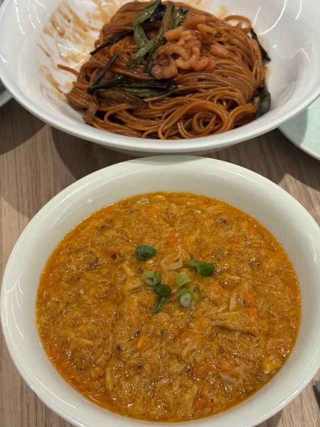 朋友相約在港威吃上海麵,好喎!反正未吃過。中午繁忙時段,要等位,但唔使10分鐘就可以入坐,都算快。在等位嘅時候,門外已有餐牌,所以已選擇了吃那個套餐,坐低即落單,方便快捷。
