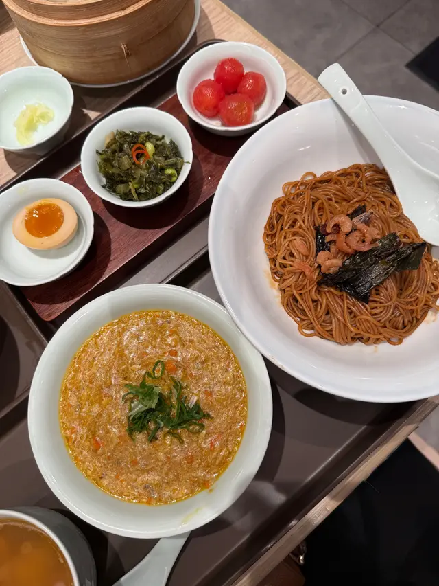 糟溜魚片湯麵$98~套餐樣樣都少少,一個人到來都算唔錯,尤其那半隻流心蛋,份量剛剛好。店員端上枱會叮囑食客,先渴湯,之後倒附上的小碗雪菜落湯麵,原來吃得有次序,幸好店員提點。
