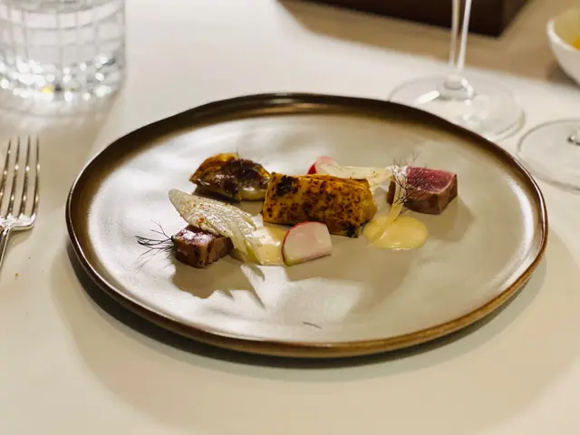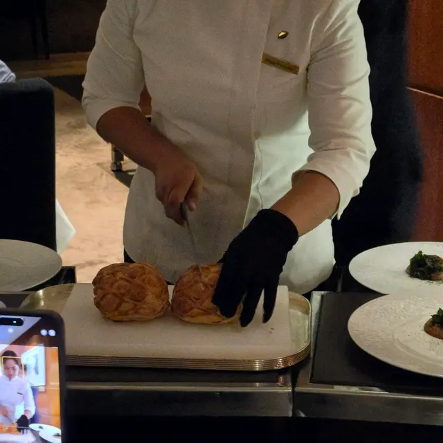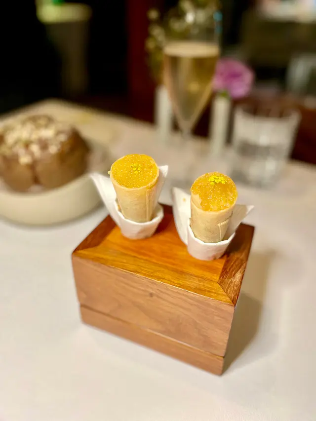 每年七月都會去 Gaddi’s 喔,舊年因為要去東京 L’OSIER 品嚐 Burgundy 名釀 😌 (人生何求),Gaddi’s 就改在六月啦,預計今年沒有變故啦吧,點知 C 先生說今年給小妹「驚喜」😬 不去 Gaddi’s 改去 Mandarin Grill。他說放心,不是要吃 Beef Wellington 或者 Rib Roast 咁簡單,而是一個特別的晚餐。OK。小妹期待 🤔。原來是 Chef Daniel Boulud 的 Taste of Daniel Boulud Dinner,一個 ‘pop-up’ event 呢 🤩。Daniel Boulud 及他在 New York 的同名餐廳不用小妹搖舌啦。最近他又進軍扒房,2024 年底開了 La Tête d'Or steakhouse,prime rib 用和牛,竟敢收貴 Smith & Wollensky 兩倍以上 🙄。既然 Daniel 來港(他的餐廳明年在香港文華開幕,所以這一餐就是 Taste of Daniel Boulud),小妹欣然先品嚐他的手藝。今晚 C 先生請 😎💖,五道菜加兩杯酒 HK$ 2,088 plus 10% service。咖啡要分開叫了 ($ 84 一杯呢)。個 course 也可以揀四杯酒的,因為 pairing 的 wines 不是「小妹杯酒」,只選兩杯襯托一下好了。∫ Amuse-bouche | Summer Greens Tarts on Cheddar Sable|Chicken Liver Parfait, Port-berry Gelée, Brioche | Pomponette Citron, Salmon Rillettes, Caviar****每一款皆精緻,味道的搭配皆合適,大小皆恰當,真是可以 one bite。Impressive 的開胃小吃,似乎晚餐有好的開始啦。∫ Bread ****麵包盒有兩款麵包 baguette 和 viennoiserie 千層酥皮的 brioche,兩款麵包有質素,雖然未算最高。好啦,進入第一道菜了。∫ Thon au Fenouil | Yellowfin Tuna Duo | Fennel | Black Olive Socca | Tonnato Sauce****鮪魚兩吃 —— 可以用日本料理用詞去描述:たたき(tataki) 和ネギとろ (躲碎了的鮪魚加蔥)的吃法。加上茴香的藥膳芬芳,provençal pancake 名叫 socca,還有醬汁是 Tonnato sauce 那是鮪魚和鯷魚的蛋黃醬。雖然這個菜不是很特別的菜式,但是配搭得很出色 —— 溫婉而滿滿 savoury 的醬汁,拱托濃郁的鮪魚,一點茴香的甘味清新。小妹認為今晚晚餐最大的缺失是配酒。第一道菜配 Whispering Angel 2024 🫣(完全沒有拍照的意欲)。那是夏天 BBQ 的酒喔。可能合作商業考慮啦(今晚的 menu 上是加上酒的品牌的),不然吃 Daniel 的菜(Daniel 來自 Lyon,雖然「紐約摩登」,骨子還是正宗法國料理喔,小妹還是 prefer something more serious to Whispering Angel 呢)。對於鮪魚(小妹當鮪魚為紅肉),覺得比較甜美雅麗的 Burgundy red 更加適合。 忽然看到廂房,裡面客人飲自己帶的 Bordeaux 名釀的 Magnum 呢 😨。C 先生說可以額外要一瓶,不過小妹今天是來吃 Daniel 的手藝,不配酒也無妨嘅。∫ Fleischnacka aux Champignons | Rolled Girella Pasta | Wild Mushrooms | Spinach | Comté-Époisses Emulsion****這個 pasta + mushrooms 菜蠻特別,野菌配卷著的長長的 Girella pasta (炸脆了的)還有 black truffle (夏天的黑松露應該來自澳洲吧?),居然很香喔,似乎澳洲松露是有質素的。這道菜配 Moët & Chandon Grand Vintage Blanc 2016 ,小妹對 M&C 香檳並不熱衷,所以 skip 啦。∫ Truite Fumée, Crème Fraîche au Raifort | Cedar Grilled Trout | Horseradish Crème Fraîche | Beets | Borscht Sauce****鱒魚,用 cedar wood 去烤, 果然是妙著,紅菜頭一點嫣紅,濃縮了羅宋湯醬汁深深旨味,忌廉一絲辛辣,主角配菜各擅勝場。配鱒魚的是 Cloudy Bay 2019,是一瓶 Magnum 來的(sigh)😤,小妹但願是creamy 的 Meursault 呢 🙄。 ****∫ Poulet Homardine a.k.a. The Chobster | Roasted Chicken and Lobster | Asparagus | Wild Rice | Sauce Américaine 龍蝦與雞胸,美好的「拍檔」,那個稱為「美國醬汁」其實是法國傳統海鮮汁來的喔,跟龍蝦絕配啦,整個菜式只是米飯(沒有拍照🥺,Mandarin Grill 的 captain 說那稱為「菇飯」,是 wild rice 一種,不是蘑菇來的)有點 overseasoned。其他無論材料質素,配搭和調味都完美。****小妹也沒有飲配這一道菜 Moët & Chandon 的 Collection Impériale Création No. 1 啦。∫ Vacherin Pêche et Thé Noir | Black Tea Ice Cream|Black Sugar Meringue |Raspberry Lychee Sauce****黑茶冰淇淋沐浴在覆盆子荔枝湯中,加上 meringue,甜湯如像愛河,淡淡茶香混在清麗的湯中,甘苦與共,真的是人間世外的美味呢。還有 ∫ Mandarin Grill Cheesecake 😌 輕盈美味。 ****...... 和 Petit Fours****還有還有,今晚的咖啡沒有上一次那麼苦 🤭。****∫ 總結個人對紐約對感覺是:紐約充滿魅力,卻生活「艱難」。沒錯,紐約甚麼都有,但生活指數高。外出用餐,已經不便宜,加上稅和貼士,埋單起碼加 30%,如果開一支名釀,加 30% 不得了 😨。 New York 畢竟有其氣度,今晚 Chef Boulud 的晚餐,一路吃,essentially 法國料理中有種 jazzy 的紙醉金迷,浮華若夢的感覺,雖然華麗,沒有造作和銅臭味,味道彈跳得如 Bill Evans Trios 的 Waltz for Debby 般跳躍 🎶。 Chef Boulud 不是整晚在 dining room 走來走去和客人寒暄,而是一直在廚房中和團隊「搏殺」,他是一個 —— 用 Macro Pierre White 的說法 —— behind the stove 的真廚師。小妹見過他做菜,料理功夫貨真價實。這個晚餐,小妹給 Chef Boulud 一個 standing ovation 啦 😋。今晚要批評的只是配酒因為商業考慮而未能「門當戶對」而已,說真的 Cloudy Bay 還好(只是未夠好而已),Whispering Angel 則是太 underwhelming 啦 😅。 瑕不掩瑜,這小問題沒有影響美麗的一個晚上嘅 ☝🏽😬。期待 Daniel 的香港新餐廳。…查看更多