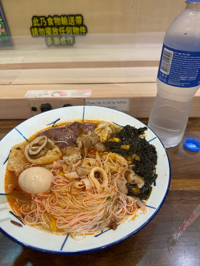 文記一連4間分店,老鋪最多人排,其他就睇彩數今次依間只可以用電子支付,如果要比現金就要去其他分店啦好耐冇黎食,依加已經進化到有運輸帶送餐不過我就見到有兩次送錯左位置,我個碗就係其中一次。。。食之前記得睇清楚啲料齊唔齊,我個碗就少左隻蛋不過同店員講聲後就好快手補返比我豬腸叫左瘦腸~比肥既更彈牙亦冇咁膩。糖心蛋好好食蛋白入味蛋黃流心豬紅冇以前好食,冇咩味牛柏葉都冇以前大塊,可能跟通漲🥲整體嚟講都仍然好食既,少少忙中有錯都可以理解。查看更多