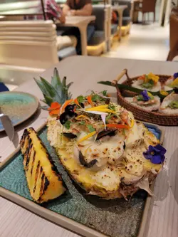 天熱得令人懷疑人生,逛街只選室內🙏相對大部分商場,element應該是最寬敞+人流偏少的,對商戶也許不利,但顧客逛得舒服🤣 位於這個商場,定價不便宜是真的,服務品質好也是真的🙈❤️尤其這家,職員都挺熱情介紹,不時主動加水而且食物也有驚喜ლ(´ڡ`ლ) ✿ 新加坡喇沙炒海鮮貓耳朵 $220大愛😍喇沙好濃郁惹味,煙韌貓耳朵煙韌完美掛汁配菜包括多款海鮮,擺盤味道都出色❤(ӦvӦ。) ✿ 菠蘿海鮮焗意大利飯 $238表面鋪滿拉芝芝士,和大量海鮮,包括青口、大蝦、帶子、魷魚、沙白😍飯底是葡汁調味,不論單吃還是配搭芝士海鮮都好吃! 不過質感是軟身的,不是意大利飯~意想不到的是菠蘿殼,其實還有好多果肉,超級多汁甜蜜🤤 ✿ 芫茜牛油果醬鮮蝦越南濱海脆餅 $118用越南濱海取代西餐常用的米餅,同樣香脆😆牛油果醬感覺類似莎莎醬的調味(?很開胃 ✿ 鮮芒果布甸椰汁班蘭粉 $78芒果花下是焦糖布丁,跟班蘭粉一樣,滑溜同時帶點彈性😝如傳統南亞甜品,甜度略高,適合與朋友分享🍨 🍴加一服務費:✔️ …Read More