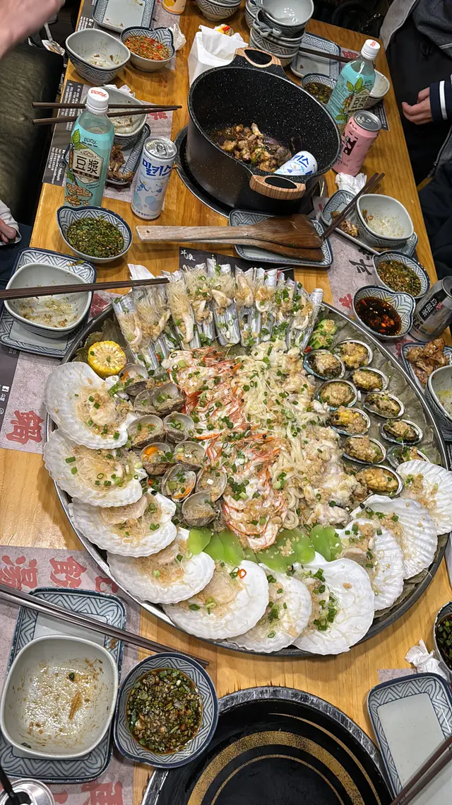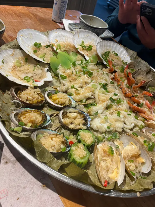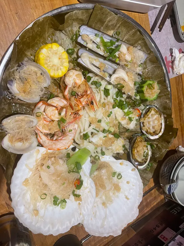 成盤海鮮一上枱,即刻有種「今晚食飯唔係求其」嘅儀式感 ✨蒸海鮮拼盤上得夠霸氣,帶子、蜆、鮑魚仔、蝦、蟶子、花甲、粉絲樣樣齊,蒜香、蔥香、鮮味輪住爆 🧄🧅🦐最鍾意係啲粉絲吸晒海鮮汁,每條都係精華之線,好爽口又冇腥味 🪢雞煲就係預料中嘅惹味,雞件入味唔鞋,辣度夠 kick。食完仲可以加湯打邊爐,一鍋兩吃,CP 值爆燈 🐔🔥🍲湯底滾一滾,仲有啲雞煲底料繼續貢獻香味,靜靜地食到成個人都暖晒,係冬日/冷氣房必備療癒系火鍋 🍽️…查看更多