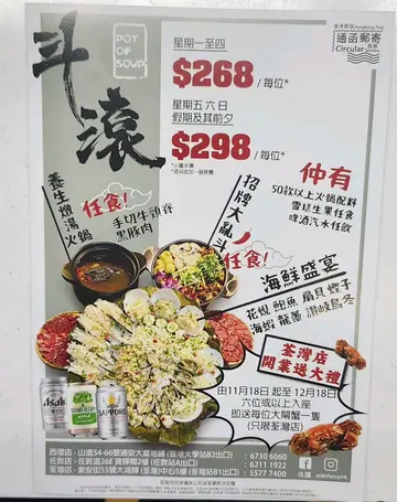 新開店環境企理,座位寬敞。$268順次序食齊「雞煲、蒸海鮮、任食火鍋」三part,最啱唔想周圍撲、想集中傾計嘅朋友聚餐。1. 頭盤:惹味雞煲一坐下就上熱辣辣雞煲,醬汁濃稠,味道夠香,雞肉份量足而且唔會鞋。食完可以再添雞或加醬,作為開頭好醒胃。2. 主戲:精華蒸海鮮🦞成個晚飯嘅高潮位!店員會換上蒸鍋,上層放滿海鮮(海蝦、蜆、扇貝、鮑魚仔等),中間墊咗烏冬。壓軸:自助任食火鍋先飲左啲靚湯,最後就自助火鍋。可以出去自助區自由拎:肉類: 豚肉片、肥牛、牛肉,肉質對辦。丸類/餃類: 整整一個大雪櫃,魚蛋、牛丸、芝心包、各式餃子,基本款齊全。其他: 蔬菜、響鈴、炸魚皮、烏冬、出前一丁等,選擇夠多。飲品: 飲品櫃任拎,汽水、涼茶、紙包飲品都有。甜品/生果:有糖水,飯後整番杯。另有生果盤(如西瓜、蜜瓜)。…查看更多