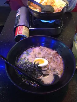 午餐套餐:黑蒜油豬骨湯底拉麵配照燒雞扒及奶茶