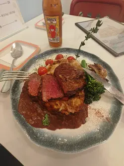 今日試左一間小店,見冇人唔洗排隊,就入去試一試。其實星期六晚餐廳都冇咩人,入到去只見到一枱食客,心諗都係“伏”多! (有啲想轉身出番去)但真係好肚餓,就博一博。比我見到有我最鐘意既鵝肝,二話不說,即刻點左個“極上級牛柳伴鵝肝薯蓉”,另外見到餐廳都擺放左唔小酒,咁就緊係想叫番杯酒黎襯下啦。原先想叫杯紅酒,但服務員可能見我一個女仔,佢推介左一枝好甜既檸檬茶酒(我自己叫佢依個名)比我,名唔記得佢點講.....首先,介紹極上級鵝肝牛柳伴薯蓉 鵝肝 :外脆內軟,絲滑柔順,入口即溶牛柳:食材頂級,烹調精湛,成數做得岩岩,非常浪漫,牛柳口感鮮嫩多汁,有肉味
