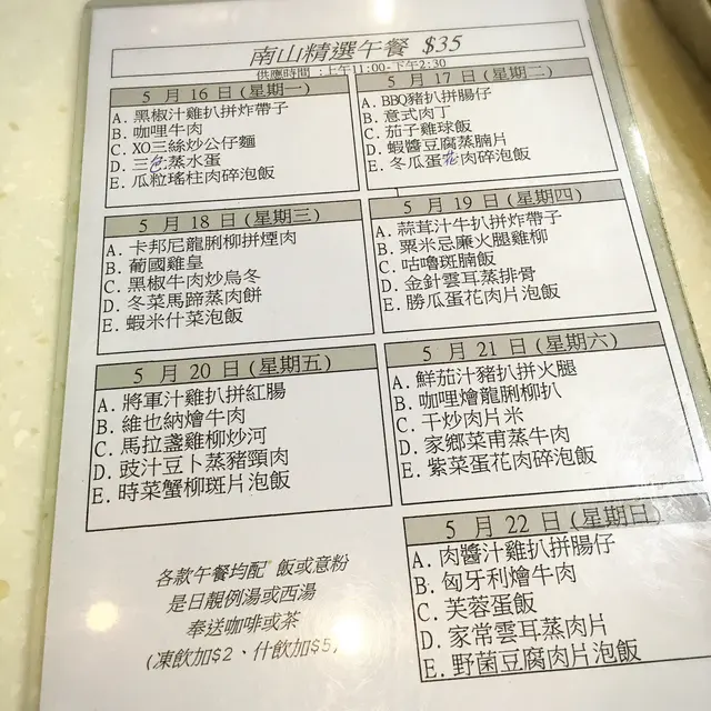 本來揾定资料去南山邨一問叫嘉湖噶食肆, 殊不知去到, 佢居然關上門. 見佢左边有間属屋邨型噶茶記叫新南山冰室, 見价錢都係街坊价, 就佢啦. 點左下午茶餐XO乾炒牛河$39, 凍飲加$3.有驚喜喎, 出到尼色澤明, 調味恰到好處, 用韭菜洋蔥芽菜伴炒, 牛肉食到唔算韌, 尼個年頭,一碟似樣噶牛河都唔係話想要就即刻食到㗎.食到咁上下, 忽然見到女侍應攞住一客炒得幾似樣又知係乜噶嘢出尼奉客, 多口問下, 係南山特色炒丁, 即刻加碼追叫左一碟, 尼到昅下, 原來係用火腿虾仁同义燒去炒丁丁麵, 但食唔出佢有何特色有何性格, 但總体都算合格噶, 但講真, 都係XO 乾炒牛河勝幾筹. 話時話, 尼度D 辣椒油幾辣下,我都食開辣㗎,但都覺得幾Kun 下,另外,餐廳用噶傳统红辣醬(粥舖用嗰種)太粘稠,已告知侍應, 希望佢哋改善啦, 各位, 寫尼篇食評都用左我成四個字, 越坐越凍, 人客也越尼越多, 现在係16:00了, 係時候走人, 再見各位!…查看更多