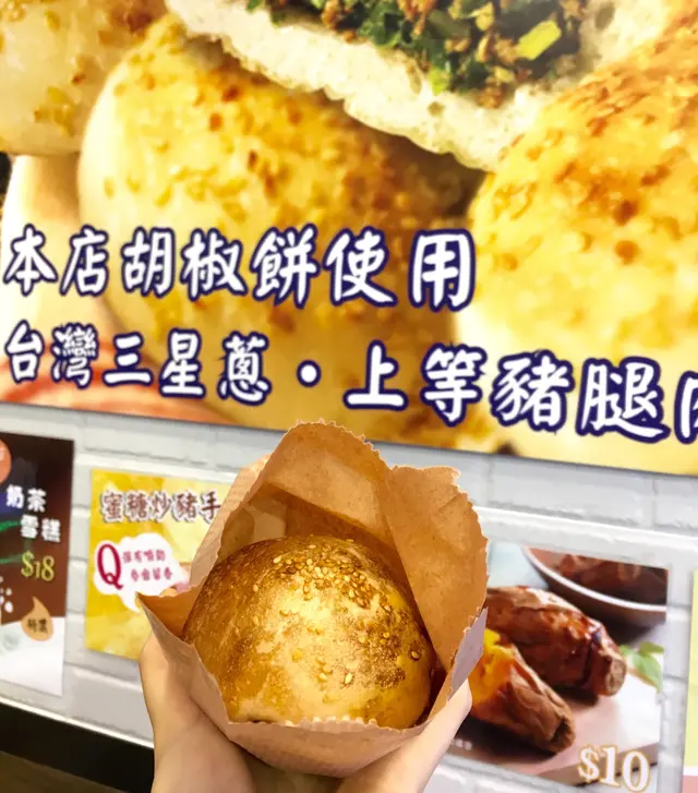 尋尋覓覓,總是找不到難忘的芋圓。到目前為止,還是未搬前的康瑞涼茶最難忘。綜合芋圓價錢可以接受,都幾大碗,配料豐富。綠茶味的果凍很彈,不甜又有茶味。芋頭粉粉的。這裡的芋圓很大粒,內有餡,但不及傳統細細粒芋圓般煙韌,還是喜歡傳統的口感。包著的餡都有味,為不夠味的外層增添味道。仙草滑溜,但糖水實在太甜。香烤胡椒餅見到大大的胡椒餅圖片貼在牆上,金黃,脹卜卜,滿是餡,忍不住要試試。一落完單,店員便遞上盛著胡椒餅的紙袋。雖然不用等,但快得有點猶疑,是不是熱的。不太熱,有點餘溫。第一口咬下去,包很硬,很乾,完全沒吃到一點餡。再吃兩口,餡開始出現。啡黑色的一團,跟圖片完全兩回事,不符得都幾誇張。看不見「台灣三星蔥」,也沒有蔥的口感。肉碎的口感也沒有,只有壓成一團的餡,毫無口感可言。最開心是吃到胡椒味,甚麼三星蔥、上等豬腿肉,實在吃不出。跟在台灣吃到的,甚至每年工展會、美食博覽擺檔的,相差甚遠。奶茶雪糕吃完胡椒餅,我倆還未心死。行到成身汗,買了杯奶茶雪糕。奶含量很少,雪糕不厚不滑,是那種冰涼、入口即溶那種。這質地的雪糕溶得特別快,一出街便開始沿著筒流下來,吃得很急,幸而筒內是空心的。奶茶味有,約隱約現。筫素一般。芋圓普通,驚喜不大。吃這個胡椒餅,倒不如比多少少錢,吃四個多汁又熱辣辣的生煎包。這質素實在可一不可再。查看更多