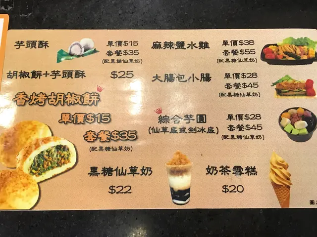 綜合芋圓(仙草底)-不得了 明明想黎試芋圓 點知妹仔大過主人婆(好老套呀😒) 原來仙草同綠茶凍仲好食😍🤤😂 綠茶凍雖然茶味唔算好濃 但勝在夠滑又夠特別 而且茶味中和左糖水既甜 適合唔中意食咁甜既朋友🙆🏻❤️紫薯 地瓜 芋圓有驚喜 除左大粒到嚇親人之外😂每粒裏面都有餡料嫁!! 餡料蓉口感綿滑 所以其實一粒既份量 = 幾粒平時食開既細細粒芋圓嫁喇🙈 但略嫌外皮厚 口感雖然煙靱 但唔夠Q彈💀☠️如果😳如果可以推出淨仙草就好喇....😳☺❤️-胡椒餅 ($15)外皮過厚 咬下去挺硬的 不過有一點要讚..😍 餡料很多😂滿滿的蔥和肉 哈哈 沒了🤷🏻‍♀️完全沒有胡椒香 只有少少辣勁😪 期望過高 還是去台灣吃吧....查看更多