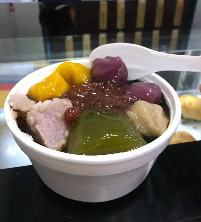 見到有雜誌介紹左一連串既旺角掃街之選,心心思約左朋友一次過去掃街!貪心又為食既我黎到當然叫個綜合芋圓,可以試勻3種味道,分別有黃色蕃薯,紫蕃薯同芋頭!今次叫左綜合芋圓仙草凍,做到平時芋圓應有既煙韌既感覺,最特別嘅係入面仲有餡,我同朋友都好中意食,有衝動想買單買自己返屋企煮黎食😋 不過芋圓嘅份量我覺得略嫌少咗啲啲,但好彩佢都有啲仙草凍,仙草凍嘅份量都唔少,我平時好怕嗰啲超甜落超多糖槳既仙草凍,反而尼款甜度適中啱啱好👍可惜本身已經食咗少少嘢所以再食唔落其他,不過見到仲有胡椒餅同埋珍珠奶茶味,珍珠奶茶味嘅雪糕幾特別,下次食得落都想返黎試一試兼再食好味芋圓😆至於胡椒餅賣相唔吸引始終唔係台灣嗰種咁即烤即食嘅感覺,所以我覺得佢一嚟有機會可能個皮會太硬,二嚟做唔到台灣嘅風味所以都冇興趣去試😂查看更多
