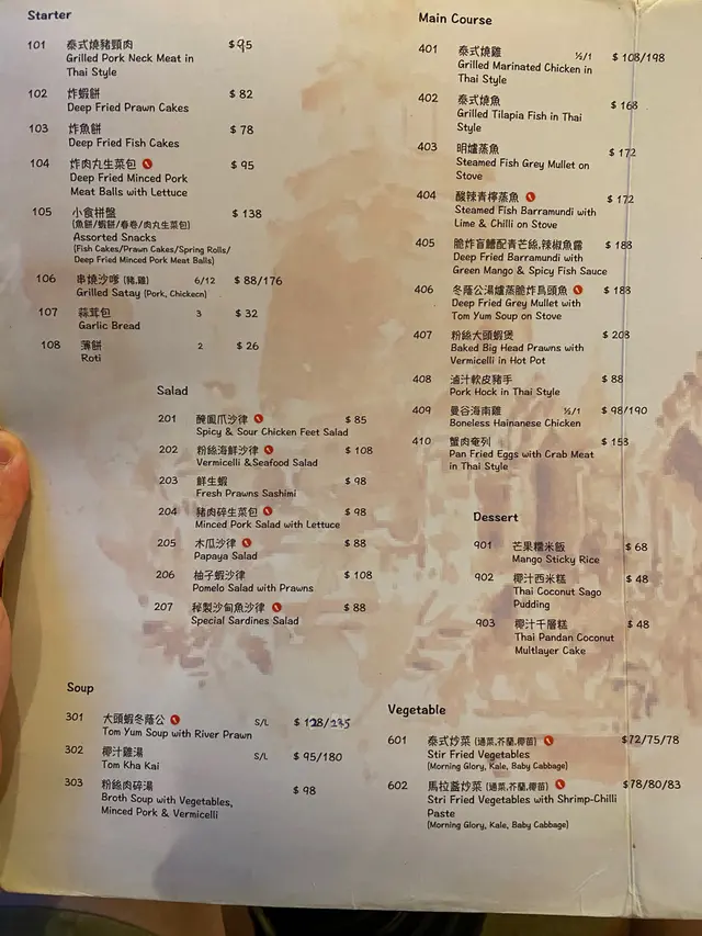 星期四上去食晚飯,餐廳裝修好有泰國feel,七點未到只係坐咗1/3客,以為佢係上樓又係內街就得幾枱客,點知點完餐,食咗兩個餸左右就慢慢差唔多坐滿8-9成。大頭蝦冬陰功-小辣唔會好辣,湯都唔會太酸,好暖胃泰式生蝦-新鮮冇雪味,中size蝦豬+雞串燒-感覺正常發揮大頭蝦金邊粉-炒得好,唔會炒完痴埋一pat 但份量偏少肉碎生菜包-肉碎量多,加咗蒜頭一齊炒又唔會炒到過火變韌,調味啱啱好,包生菜真係好夾炒椰菜苗-炒得爽口,唔會炒到變黃,但略嫌份量偏少芒果糯米飯-芒果好甜,糯米飯口感正好,暖暖哋又有少少咬口,鍾意個椰汁係少少杰身,個人唔喜歡太稀*總括而言,對呢餐泰國菜好滿意,老闆一腳踢又送餐又做埋水吧,姨姨同廚師都會幫埋手送餐😁佢地都好有善,同行朋友大讚冇揀錯餐廳,有下次