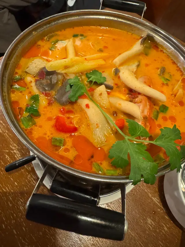 由灣仔到銅鑼灣再來返灣仔…難得食品keep到水準…疫情後來過幾次…食物質素對得住價錢..生意難做..樓上店…希望店舖可以繼續…因為喜歡食名爐魚…每次來都會點酸辣烏頭唔食得辣嘅我…都食到….好細心會有碗湯比你後加入爐繼續煮青咖雞…會跟兩塊薄餅…薄餅好好食…又夠熱又脆又香…咖哩唔太辣非常好送飯…柚子大蝦沙律…有好多柚子..個汁好好味…個人覺得如果個汁無咁甜更好..掛住食無影相最後芒果糯米飯飯係暖嘅…芒果切粒方便食..唔太大份…兩人份量甜品啱啱好