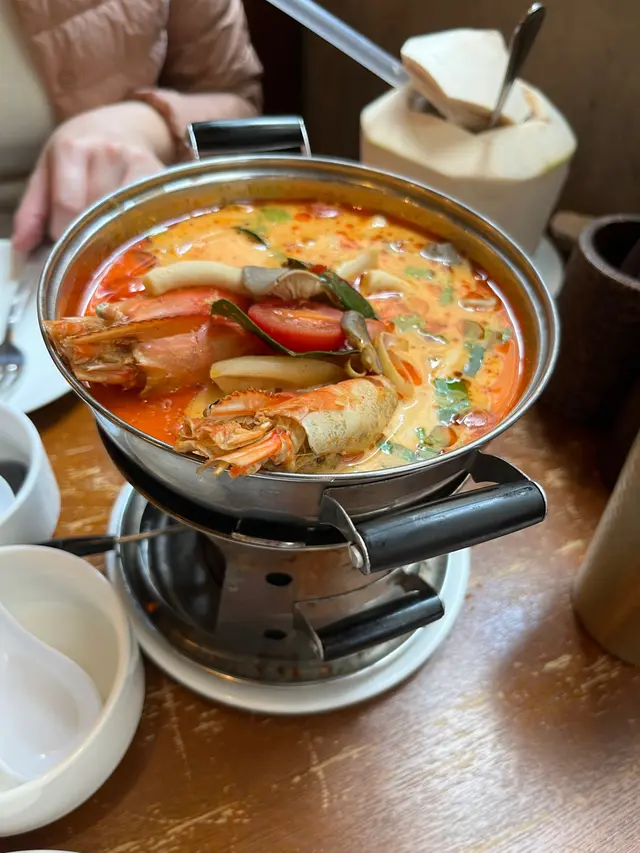 由灣仔到銅鑼灣再來返灣仔…難得食品keep到水準…疫情後來過幾次…食物質素對得住價錢..生意難做..樓上店…希望店舖可以繼續…因為喜歡食名爐魚…每次來都會點酸辣烏頭唔食得辣嘅我…都食到….好細心會有碗湯比你後加入爐繼續煮青咖雞…會跟兩塊薄餅…薄餅好好食…又夠熱又脆又香…咖哩唔太辣非常好送飯…柚子大蝦沙律…有好多柚子..個汁好好味…個人覺得如果個汁無咁甜更好..掛住食無影相最後芒果糯米飯飯係暖嘅…芒果切粒方便食..唔太大份…兩人份量甜品啱啱好…查看更多