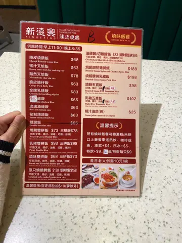 喺中環要食到平靚正嘅燒味,「新德興陳皮燒鵝✨」真係唔錯嘅選擇,佢地最出名嘅燒鵝,外皮燒得乾脆,皮下脂肪剛剛好,一啖咬落去非常好味。另外叉燒肥瘦適中,充滿蜜汁,肉質軟腍好味,非常高質素,而且價錢合理,所以非常抵食。• 脆皮腩仔飯 🐷🍚腩仔皮脆得卜卜脆,肉質香口,配埋白飯同少少豉油,簡直係完美組合。• 黯然叉燒飯(雙太陽蛋加叉燒) 🍳🍖叉燒肥瘦適中,蜜汁香甜,肉質軟腍。加埋兩隻太陽蛋,蛋黃流心同叉燒一齊食,真係「黯然銷魂」既滋味。• 燒鵝油雞瀨粉 🦆🍜燒鵝外皮乾脆,帶淡淡陳皮香,油雞嫩滑,瀨粉吸晒鵝油同雞汁,香濃又滑口。