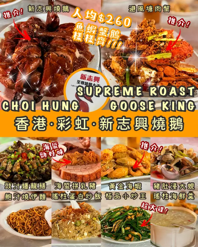 新志興至尊燒鵝大王 (彩虹) 網址: https://s.openrice.com/QrbS0R1W200 地址: 香港彩虹龍池徑60A號地舖 電話: +852 27526778