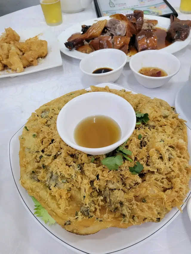 很久沒有牛池灣這間大排檔了,今日行完山經過, 5:30還早,暫時未有太多客人。走到特定招待處攞位,兩個人被安排在近廁所的冷氣位置,坐在室外不單止沒有冷氣,更是有濃烈的煙味,不過這是大排檔的特色。大排檔必食:椒鹽鮮魷 $108粉漿很多,鮮魷味道不突出,似乎和以前比較退色了很多。辣椒炒大腸$88乾煸辣椒很好食,但大腸很乾身,頗鹹,而且顏色很深色。小炒王 $98韭菜花嫩口,魚乾仔有新鮮炸過,非常脆口,但份量很少,蝦干,和魷魚鬚的份量也不多,比較失望。沙薑豬手 $98因為是今晚最好食的一款菜,豬手爽口,沙薑味香濃。四個菜埋單$392 , 6:30食完走出來大排檔開始很多客人排隊,大部份都是飲啤酒,氣氛很熱鬧。但比較失望的是:味道和以前比較,似乎沒有以前那麼好食了。…查看更多