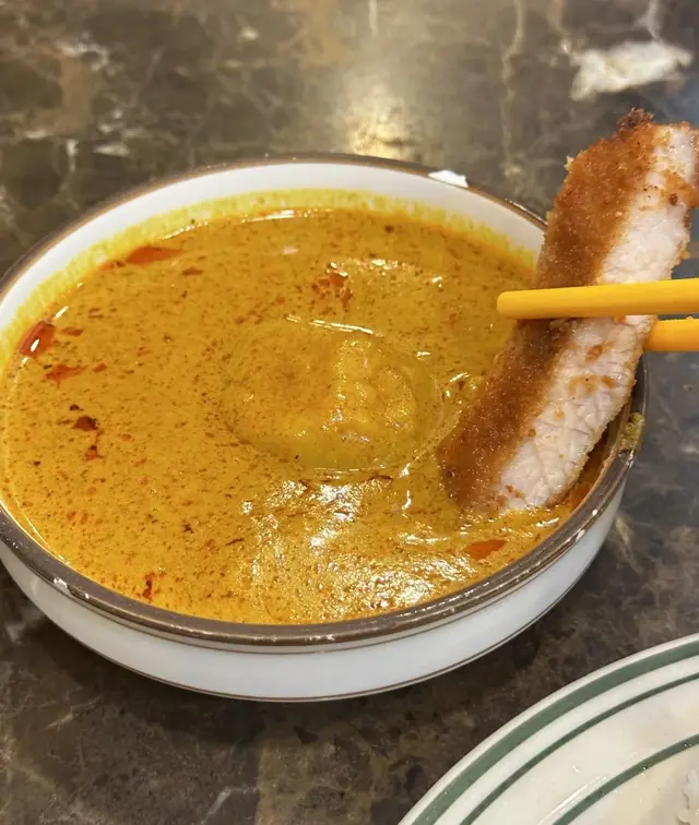 好普通的咖喱&豬扒 曼巴食神等級22025-05-195K 瀏覽 關注 事緣呢日咁啱一個去灣仔辦事,就一試呢間so called名店,1:20去有條人龍,等左接近半個鐘有位。卡位就無,去到一張大圓枱,已經見到每位必點的咖喱豬扒。份量超多,見隔離個男人都食唔曬要搵盒裝走 。另一邊個女仔食剩一半。我份豬扒來時,仍係份量好多,咖哩汁係分開上,只見較稀,認同其他網友講偏辣無椰香的。要辣定要椰香人人可取向不同,但D汁稀就已經趕客,而且味道絕稱唔上咩秘製。我特登唔點咖喱汁下試下塊豬扒咩料,口感唔鞋但醃得唔夠入味。豬扒飯98另加凍飲22,無套餐價,雖然豬扒份量夠曬多,但始終係下欄野,寧願平廿蚊少返D豬扒。總而言之,吹大左,無下次。…查看更多以上食評乃用戶個人意見 , 並不代表OpenRice之觀點。3分享好普通的咖喱&豬扒 新景園咖喱小廚 https://s.openrice.com/QrbT0Y4vS00檢舉 張貼 評分3味道2環境3服務2衛生3抵食用餐日期2025-05-12等候時間25 分鐘 (堂食)人均消費$120 (午餐)